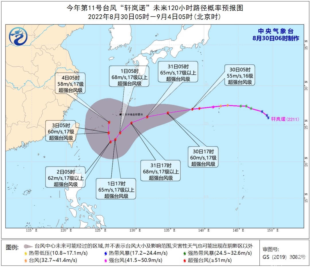 据分析,由于台风生成时纬度较高(北纬25.9℃),通常情况以向北移动为主,但这次它偏偏一路向西。西太平洋的副热带高压孕育了台风“轩岚诺”,副热带高压中心在它的北侧,它在副热带高压的南侧,副热带高压南侧一直盛行偏东气流,所以11号台风“轩岚诺”驾着东风而来,一路西行。