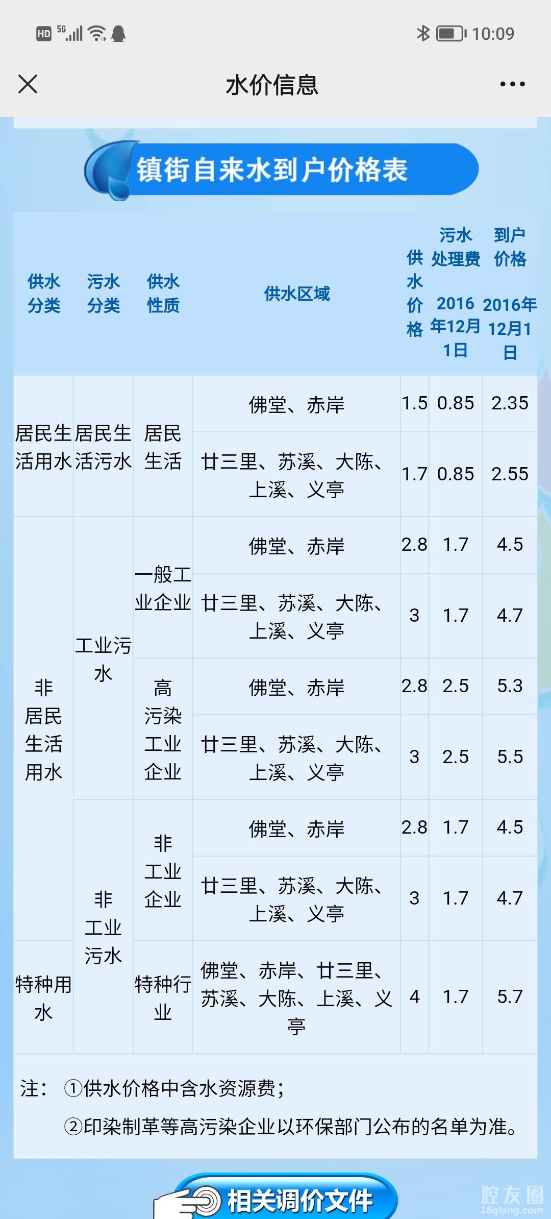 昨晚一个匿名ID发了水价表,大家争议很大。我说第一档2.55的应该是上溪这种偏远的,有人认为我偏见,真心不是。确实是市街贵点,乡镇便宜点。我截了水价表,大家可以看看,