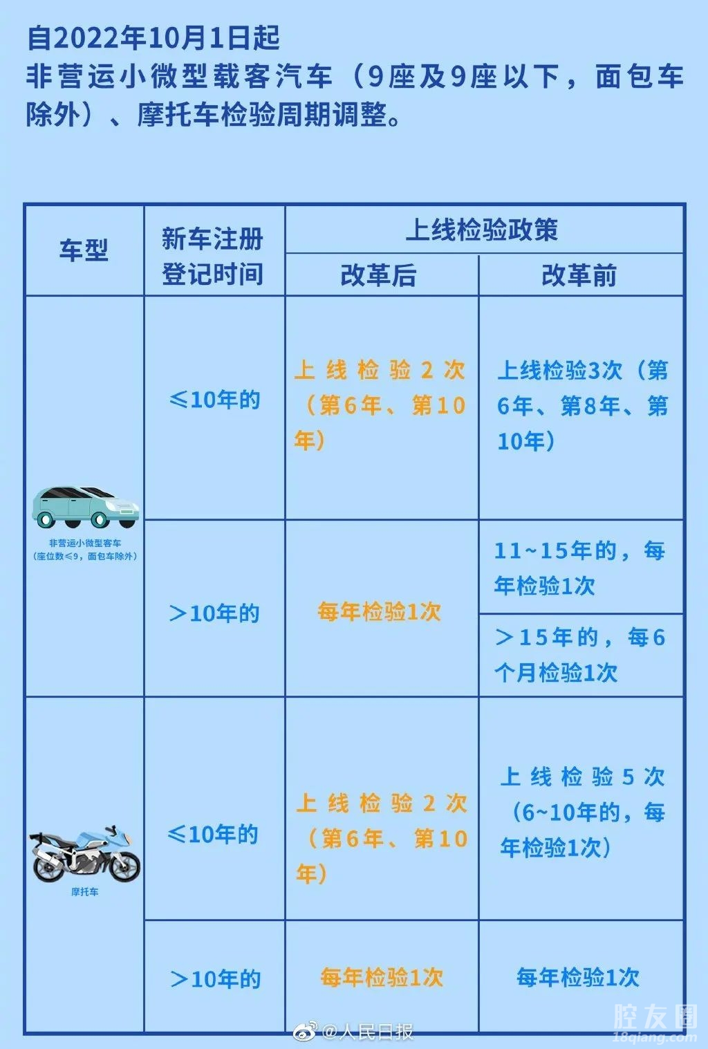 从义乌市公安局交警大队车管所了解到,根据公安部的通知,从10月1日起,我国将进一步放宽私家车检验周期,义乌同步调整。此次改革,将进一步优化调整非营运小微型载客汽车、摩托车检验周期。将原来非营运小微型载客汽车10年内上线检验3次,也就是在第6年、第8年、第10年检验,调整为检验两次,即在第6年和第10年上线检验;摩托车从今年10月1日起,也是在第6年和第10年上线检验两次即可。对于超过10年的非营运小微型载客汽车和摩托车,今后将统一调整为每年上线检验1次。不过,在10年内,这两类车辆仍需每两年向公安机关申领一次检验合格标志。 来源 | 义乌市融媒体中心 央视新闻客户端 人民日报作者 | 王佳丽
