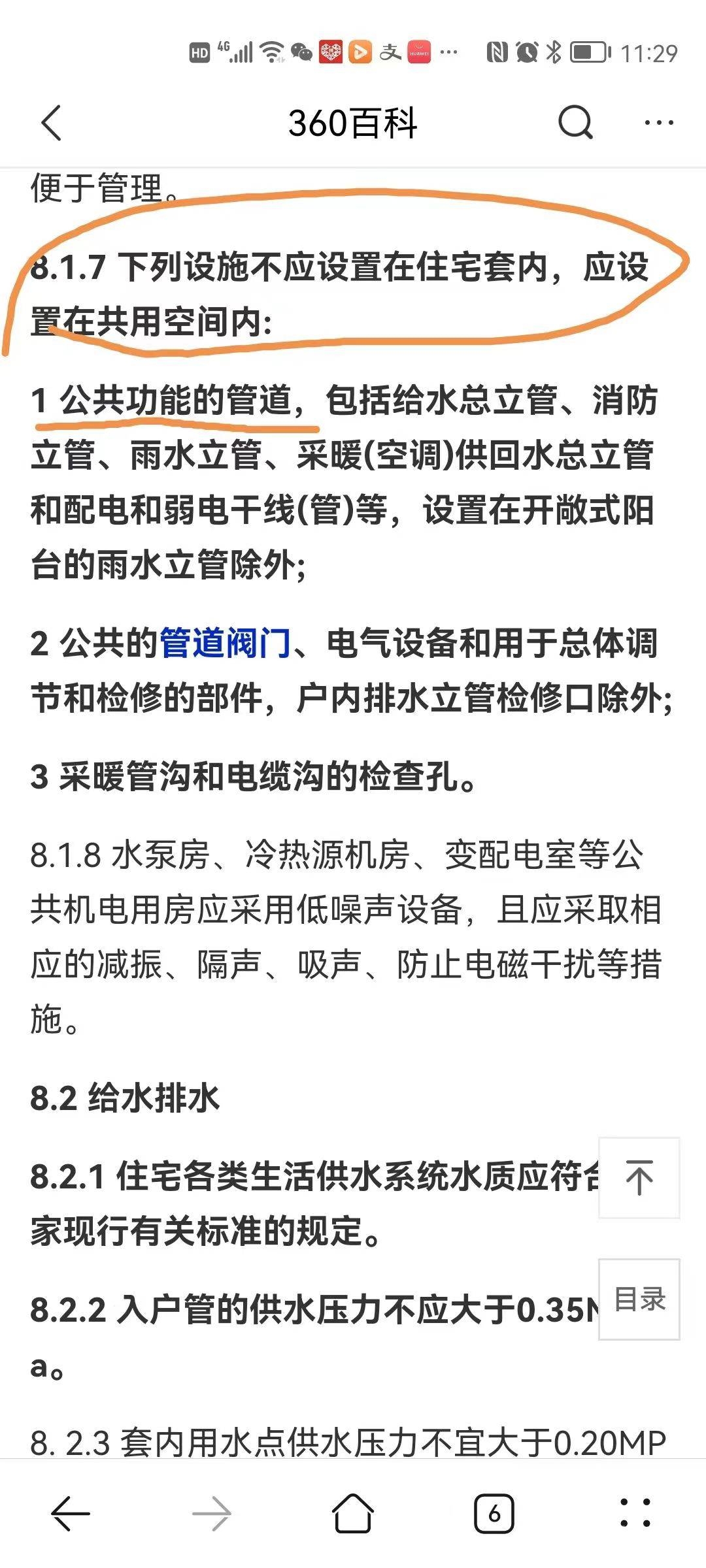 1.根据国家《住宅设计规范》规定公共功能管道不允许设计室内(见附件图片)