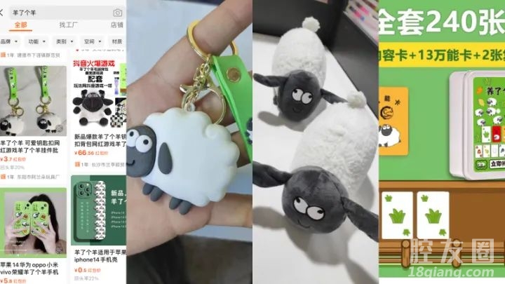在游戏爆火的同时,相关周边也加紧赶工定制。在1688平台,不少义乌商家推出各种《羊了个羊》周边产品,包括钥匙扣、手机壳、桌游卡牌、毛绒公仔、鼠标垫、口罩等多款周边,售价从3元—39元不等。