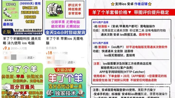 与此同时,淘宝、拼多多等平台也衍生出了游戏通关攻略、道具教程、辅助器、代练代打等新的卖品,月销量从几千到上万不等。