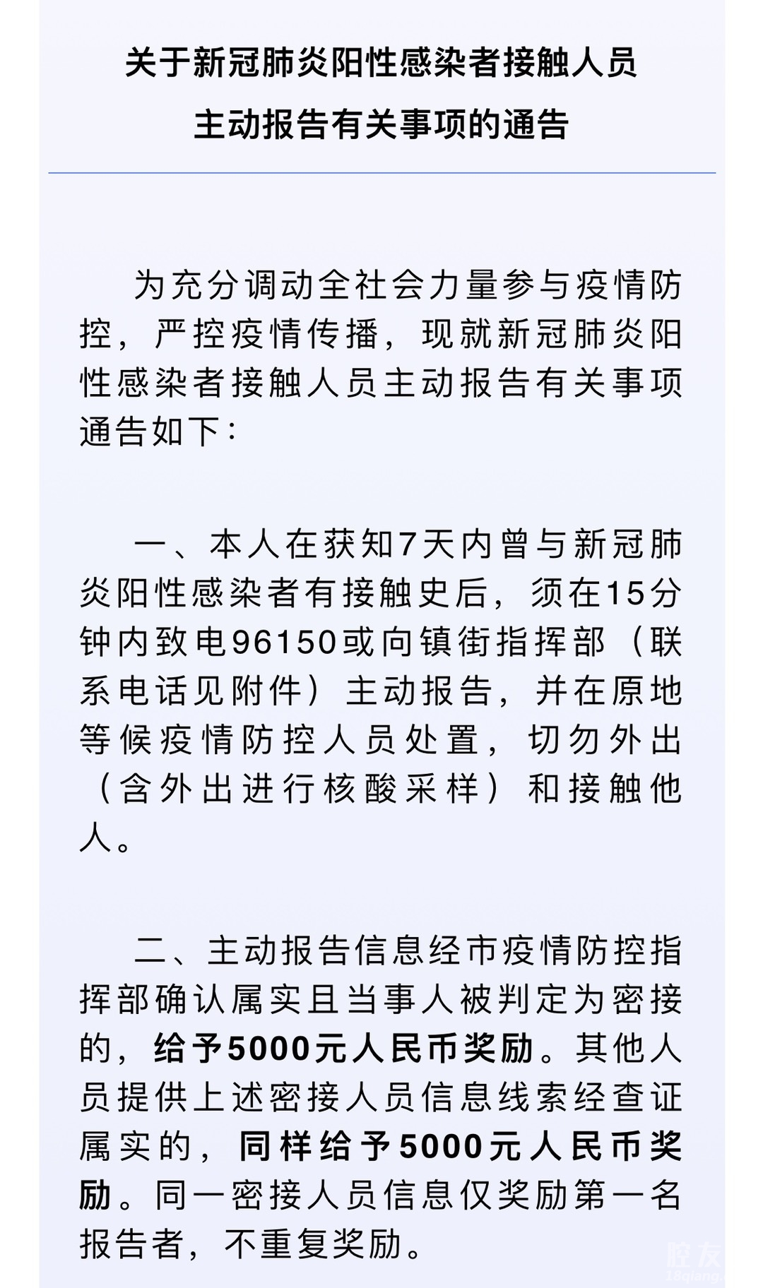 关于新冠肺炎阳性感染者接触人员主动报告有关事项的通告