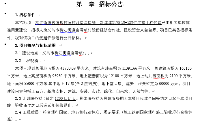 9月22日,稠江街道官清畈村旧村改造高层项目新建建筑物1#-12#住宅楼工程代建招标文件公示。