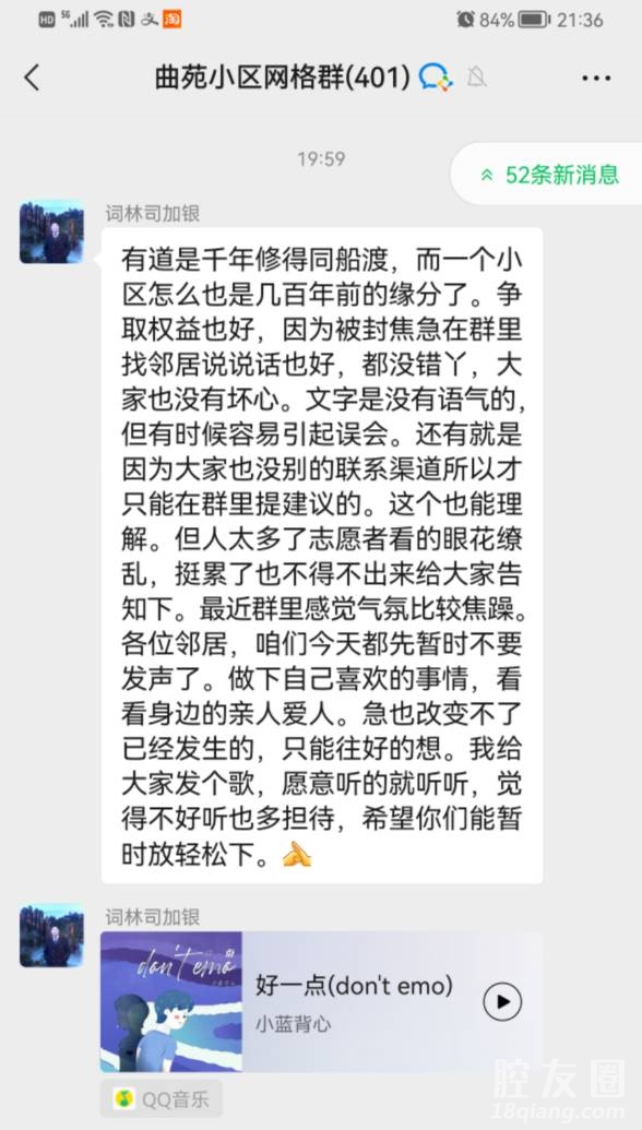 这次居家屈指又快四天了,日出日落一日三餐围着娃子转,五味杂陈各种焦虑,真的快憋坏了,默默一直关注着小区群,期待有新的佳音,可还是一次次的些许失望,也许时机未到吧!正当我开始继续迷茫时,咱们区社长发来一首音乐,点开好像确实好了些,正当词里所唱“吃的饱一点心情好一点……”,明明自己24小时待命,自己本来就不容易,还要处处为我们着想,安抚我们的心情,距离上次八月,那更是辛苦,每次我去核酸,那他一定是雷打不动在场,而且衣服一定湿透了,作为我们小辈真的倾佩,这才是实至名归的人民好公仆,这样的人应该不常见了吧?给老百姓办实事。