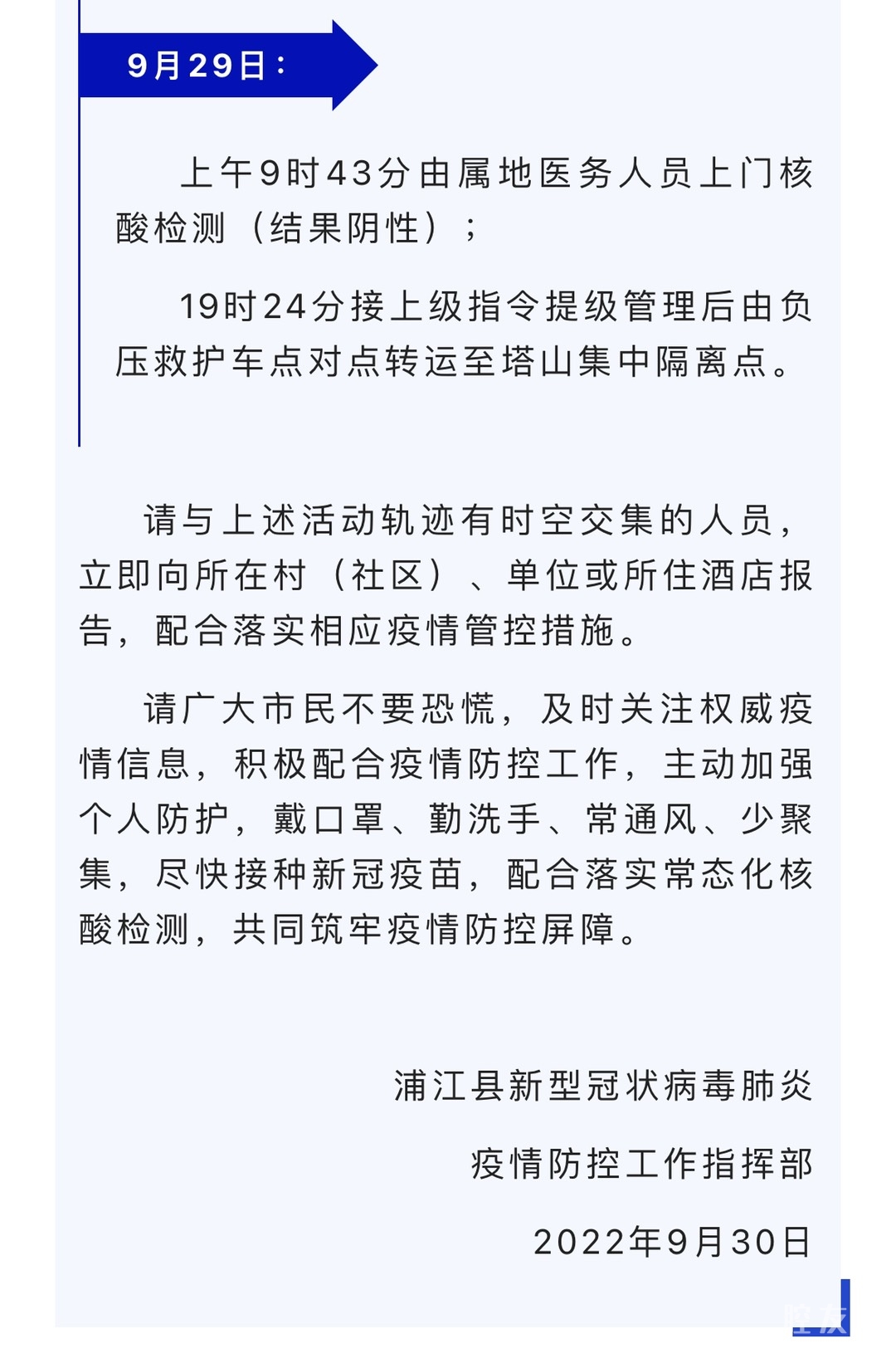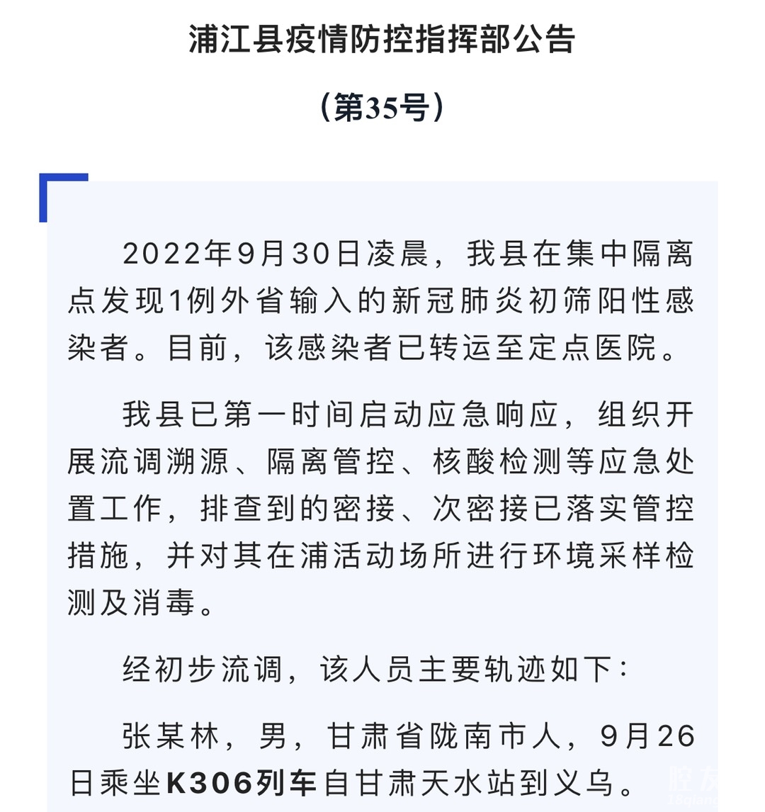 浦江县疫情防控指挥部第35号公告