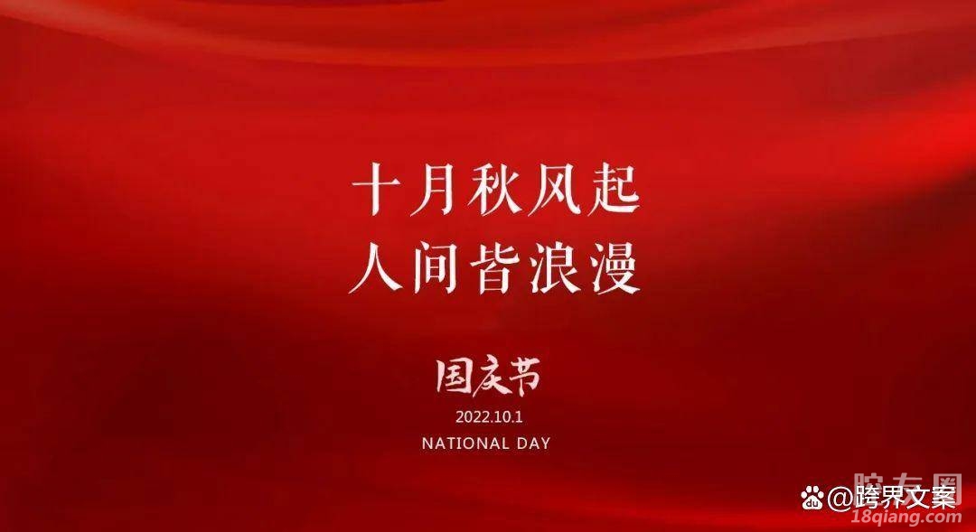 金秋十秋迎国庆,璀璨喜气耀大地;万顷碧波国兴旺,家居乐业百家欢;万紫千红普天庆,祝福似雨满天洒;祝福祖国永昌盛,繁荣富强更辉煌。国庆快乐!