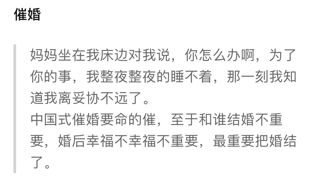 91年的,外地人,不想结婚,也不想生孩子。为了不和家人住一起,特地跑来义乌,在义乌已经待了4年了,随着年龄的增大,催婚的次数也越来越频繁,每次打电话,每次回家就是被催婚。今年开始自己做电商,本来今年的行情也不好,只有投入没有产出,压力本来就大,可是父母根本不想和你商量,就想让你结婚,他们不管你和谁结婚,也不管结婚幸不幸福,他们只想让你完成结婚这个任务,今年过年我都不想回家了。