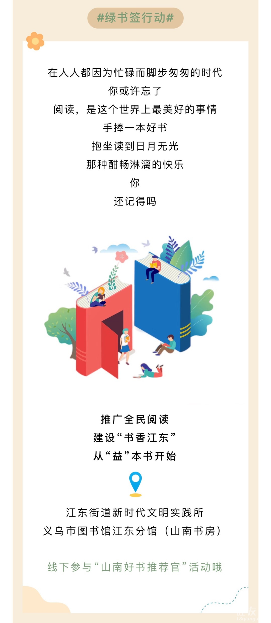 [义乌故事]“绿书签行动”  江东‘益’本书—寻山南好书推荐官 [复制链接]