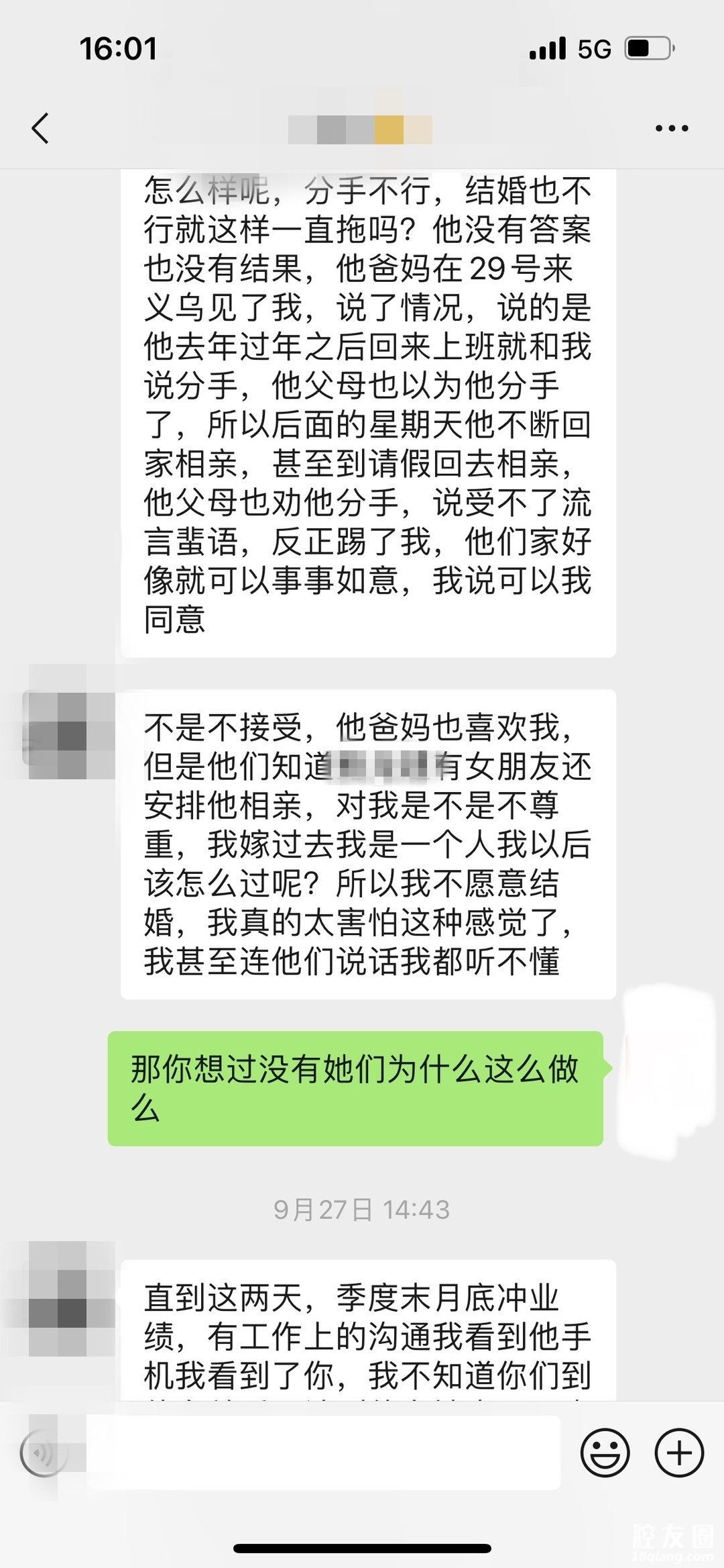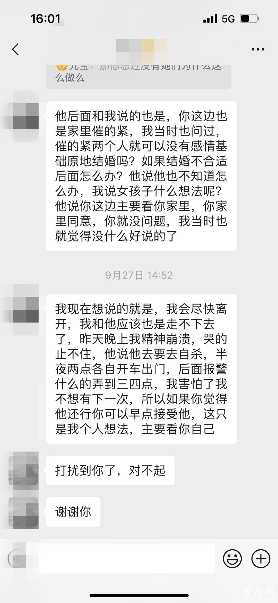 所以你们互相矛盾的说法,真相如何,只有你们自己清楚。希望以后你们都好自为之。谢谢你,你的方式不是很友好也很愚蠢,但我终究感谢你让我“及时止损”。希望你能如愿,和他结婚