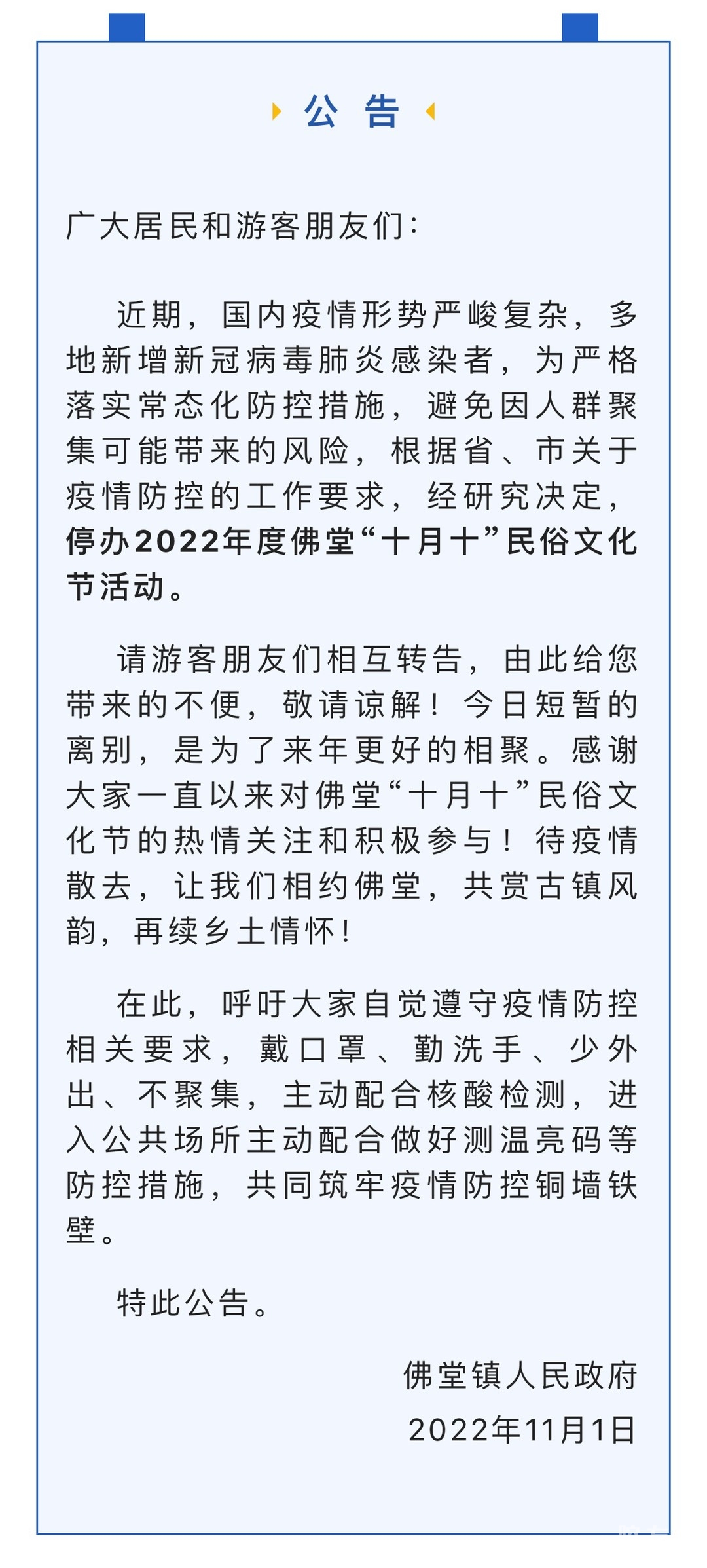 关于停办2022年度佛堂“十月十”民俗文化节活动的公告