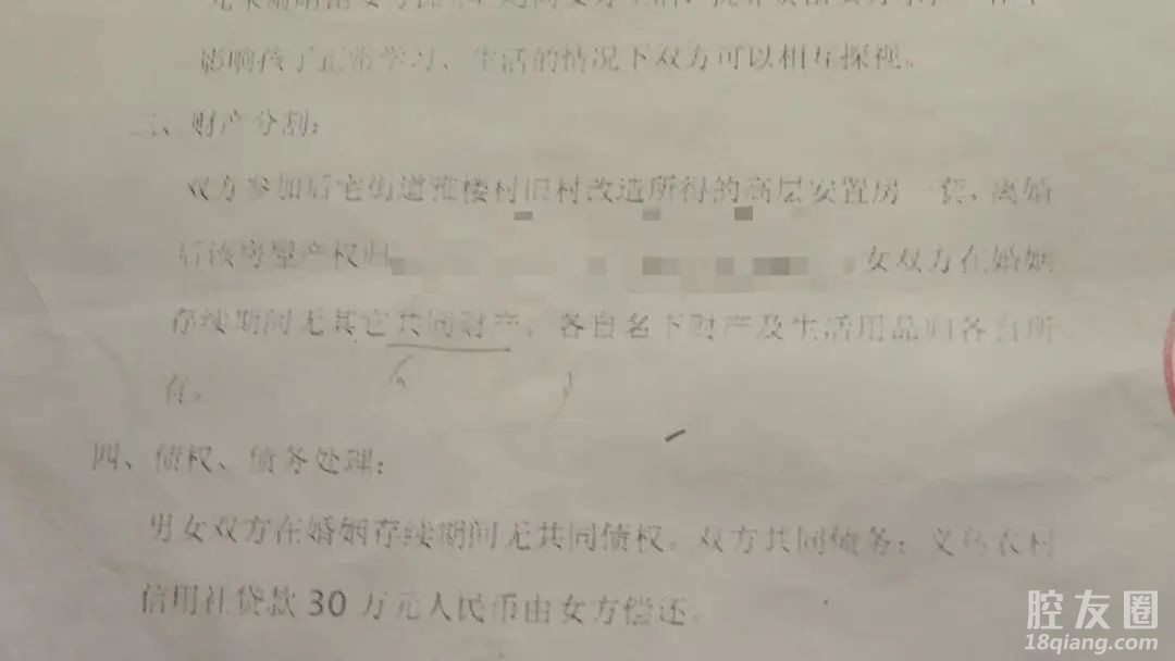 朱贤(化名)是后宅街道雅楼村人,2010年,经人介绍,与廿三里街道下朱宅村的朱静(化名)结婚,婚后育有两女。2022年2月,两人协议离婚,如今,双方因婚后的相关财产问题一直谈不拢。为此,朱贤找到了我们栏目的老娘舅龚景永,希望他能来帮帮忙。在后宅街道群英三区,老娘舅龚景永见到了朱贤。朱贤告诉老娘舅, 2010年他和朱静结了婚,现在大女儿12岁,小女儿8岁。前两年,朱静提出要跟他“假离婚”,离婚后还是一起生活,他也没有多想,就答应了。朱贤:骗我去离婚,一次路上开车时跟我说,看看你爸妈,有没有领过结婚证,日子是什么时候,都已经生了两个小孩了,我跟你去离婚也是“假离婚“,不是要真的跟你离婚。老娘舅 龚景永:她说你父母,没有办理过结婚登记手续,照样过一辈子,所以你们夫妻俩本来办过结婚登记手续,就学你爸妈的样子不要登记,即便是登记过了,也要去离婚,这样的意思?朱贤:对,我老婆娘家的事情了,家里是卖家具做生意的,娘家的意思,她女儿不跟我离婚的话,家里卖家具的生意这块,不会给她管,所以要跟我离婚,目的的话,是就算离婚了,也还会跟我过日子,不是真的跟我离婚。 于是,在2022年2月,朱贤就和朱静签订了离婚协议书,大女儿的监护抚养归朱贤,小女儿归朱静,双方各自有探视权。在朱贤看来,“假离婚”只是走个过场,所以并没有仔细看离婚协议书就签了字。朱贤:离婚协议书,我也确实没有看过,话是没错,是应该好好看一下的,当时我没仔细看在赌气,也不是真心要跟她离婚,两个小孩都这么大了,想着过日子过到老,无论是再找个老婆,还是再找个男人,后面都会影响到小孩的,当时我也是生气,就没有仔细看协议书,作为成年人来说,不应该发生这样的事情,当时我按手印的时候,协议书是两张纸 是第二张递给我的,第一张离婚协议书的内容,第二张只有二分之一的内容,就只要按手印,具体内容我也不知道。可让朱贤没想到的是,说好的“假离婚”,如今却成了真。朱贤给老娘舅看了当初签订的离婚协议书,其中财产约定“双方参加后宅街道雅楼村旧村改造所得的高层安置房一套,离婚后归两个女儿共同所有,男女双方在婚姻存续期间无其它共同财产,各自名下财产及生活物品归各自所有”。对于债权债务处理,则是约定“男女双方在婚姻存续期间无共同债权,双方共同债务:义乌农村信用社贷款30万元由女方偿还,如有单方债权、债务,由各自享有,各自承担”。朱贤:离婚协议里的财产,都没有写清楚过,两间房,包括我买给她的保时捷,都没有写进去过,就是家里的拆迁款,村里分来的套间,保留下来了,这写着也是我两个女儿的名字,我没有,一切都没有,可以说是一无所有,一分钱都没有,就空手一个人。朱贤所说的两间房,是指2019年在下朱宅村购买的两间地基,2021年装修好的。而家里的拆迁款,其中包含朱贤奶奶105个平方卖掉的钱,朱贤自己旧改平方卖掉的钱,以及朱贤父母加上朱贤夫妻俩其它的钱。朱贤说,这些钱全都陆陆续续转账给了朱静。 朱贤:当时买地基两间地基花了200万,还有店面投标费24万,7万押金,还有村里买房子的10万,都花到地基里,拿来建房这些,还有买保时捷的车,装修,多的钱都在她手里。老娘舅 龚景永:那建这两间房的钱是不是你出的?朱贤:这些都是我出的,都有转账记录,这两间房,第一年建好的时候房租是我在收的,第二年的话,因为我一共建六层,一到五楼是出租房,一楼是店面,二楼到五楼是单间出租,六楼是自住的,因为钱比较紧张六楼没有装修,因为我后宅这边还有房子,我当时是暂住在后宅的,第二年的房租 让老婆先收,外面欠的账让她先还,今年的房租我就没有收过了。朱贤也提供了相应的转账记录及具体的流水证明,朱贤说,当初在下朱宅村买地基时,考虑同村人去买,能够节省一大笔费用,因此在两份关于地基的买卖合同上,一份写着是朱静的名字,一份则写着朱静母亲的名字。朱贤表示,既然双方已经离婚无法挽回了,那么属于自己父母,包括长辈的钱应该还回来,剩下的夫妻平分。朱贤:既然夫妻俩你是真心要跟我离,爸爸妈妈的钱,奶奶105个平方卖掉的钱都要拿回来,毕竟是父母的钱,夫妻俩不和分就分,但是爸爸妈妈,祖宗的钱一定要拿回来,不属于我们俩夫妻的,其中我爸爸妈妈的钱,贷款的钱加上借来的30万,总共有60万。老娘舅 龚景永:这是你爸妈的钱,那你奶奶平方卖掉多少钱?朱贤:118.65万元,还没有算我爸妈每个月还给银行的利息 两千多一个月的利息,从贷款出来到现在,都是我爸妈在还的 。那么对此,作为前妻的朱静又有何说法呢?老娘舅在现场等了许久,也不见朱静和她的家人。为此,老娘舅通过电话联系了上了朱静。朱静:我跟他2019年的时候,就已经分开分居了,怎么能说是“假离婚”,所有人都知道,包括小孩也都知道的,他自己住在后宅,我住在娘家,如果当初离婚掉,马上分居,这个可以说我是“假离婚”,现在都这么多年了。朱静的说法与朱贤截然相反,在朱静看来,两个人是分居两年后才离婚的,并不存在什么“假离婚”一说。对于朱贤提到的两间地基一事,朱静也有自己的说法。朱静:当初建这两幢房子的时候,是我妈去签合同的,我们没有参与过。 老娘舅 龚景永:他说第一间房和你签合同,第二间房跟你妈签合同。朱静:签第一间房的时候我在场,是跟我妈签合同的。老娘舅 龚景永:第一间房是89万多元 ?朱静:对,总共的钱都是我妈