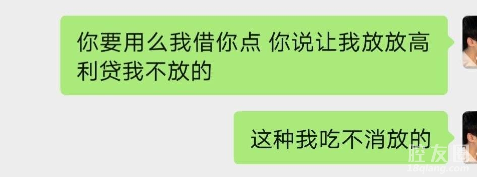 看他朋友圈感觉是混的还可以,突然来问我要不要放高利贷...说他最近周转不开,自己开了公司要给员工发工资,又有人问他借贷问我要不要入一下...我明确告诉他借他周转可以,放利息我不要 来,但介于他一般的人品和这么久不联系,纠结要不要给,不给感觉很难为情 ..