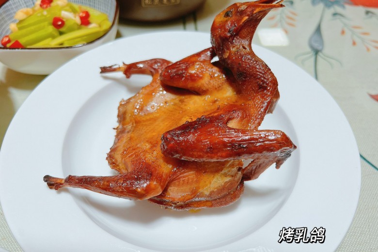 昨天腌制了两只嫩鸽子,今晚烤箱烤乳鸽。
