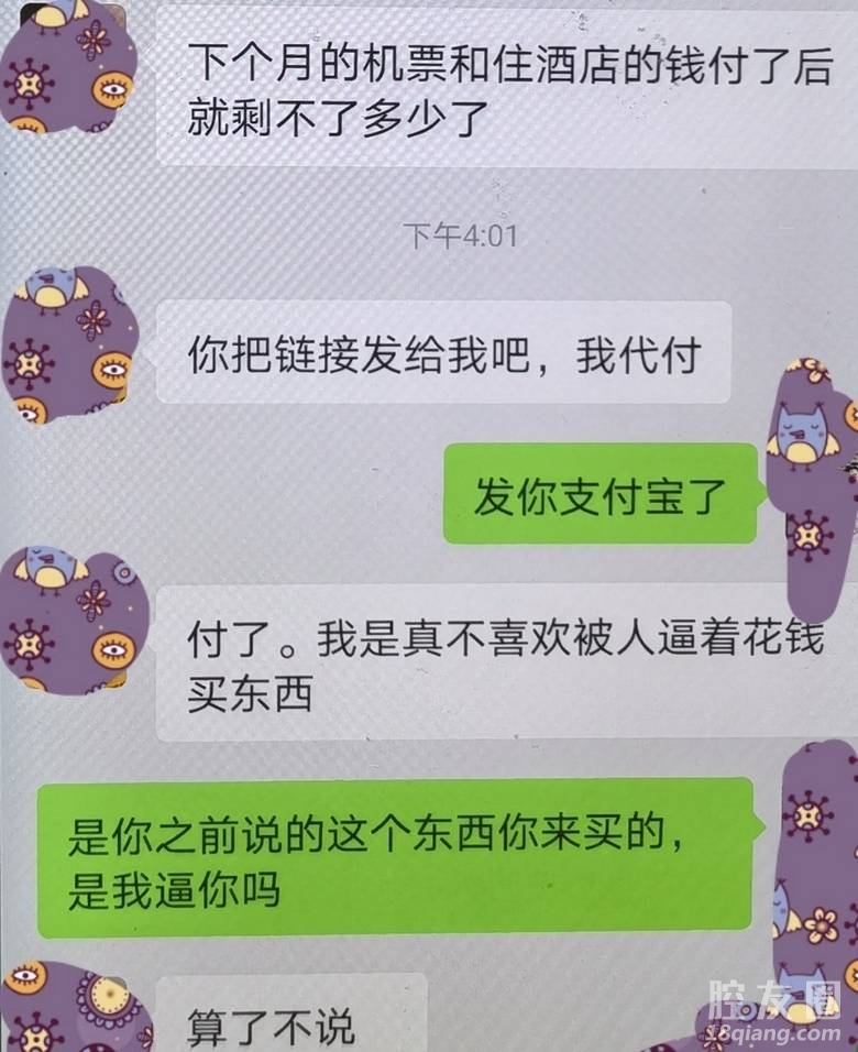我就直接问他:给女友买个400块的东西你就难受成这个样子?