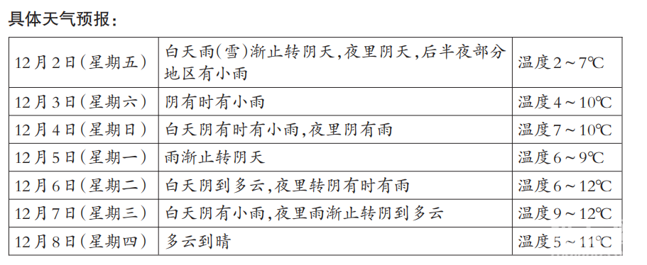 11月的最后一天,义乌迎来了气象意义上的冬天。早起出门的小伙伴能明显感到气温在下降,大家都裹起了厚厚的羽绒服。入冬后的第一个周末,义乌就被寒潮施了“湿冷魔法”,阴雨+低温,大家注意防寒保暖。 中国天气网发消息称,今冬以来最强寒潮持续发威,使26个省会城市创下半年来气温新低。11月30日白天到夜间,降温重心主要位于江南、华南一带。12月1日,寒潮带来的降温进入尾声,华南气温还将略有下降,而北方地区将开启大范围回升。本次寒潮过程还给我国多地带来初雪,大城市中,郑州、西安、南京、合肥、长沙、武汉、杭州都纷纷飘雪,其中长江中下游不少地方的初雪较常年明显偏早。 虽然寒潮快结束了,但是在冷气团压制下,未来几天,各地升温幅度较小,预计今天,广西东北部、贵州东部、湖南、江西、福建西部、浙江中西部、江苏西南部、安徽中南部、湖北大部、河南东南部等地的日平均气温较历史同期偏低5℃左右,其中广西东北部、贵州东南部、湖南、江西西部、湖北南部等地的日平均气温较历史同期偏低7℃左右。大家仍需做好保暖工作,谨防感冒。 具体来看义乌,未来七天阴雨依然是主旋律,湿冷加持,风寒效应明显。其中,今天白天雨(雪)渐止转阴天,夜里阴天,后半夜部分地区有小雨,最低气温只有2℃,最高气温也在7℃左右。在雨雪和大风天气下,人的体感温度将比实际预报的气温还要低,冻手冻脸冻耳朵,大家出门最好厚外套、帽子、围巾全副武装。12月3日后期到4日、12月7日至8日各有一次冷空气补充过程,气温小幅波动,最高气温在10~12℃。在这里要提醒大家,需防范气温波动及低温对人体健康、农作物等的不利影响,注意保暖,尤其要注重头部、颈部和关节的保暖。 此外,气象专家提醒,南方近日雨雪频繁,公众雨雪天气出行请注意交通安全,同时需防范冻雨对电力供应、通信设备等的不利影响。(来源:中国义乌网) 请输入描述