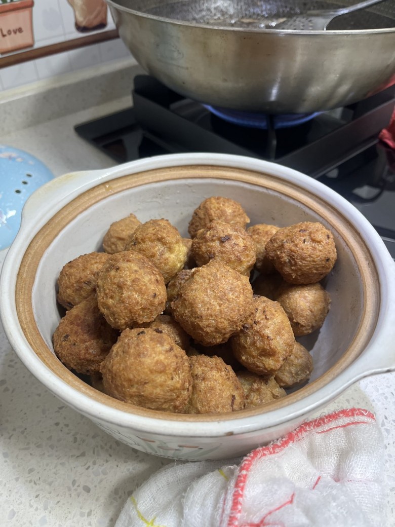 剁肉做肉圆,今天去的早买到了漂亮的梅山黑猪肉,中午回来自己剁肉做肉圆。