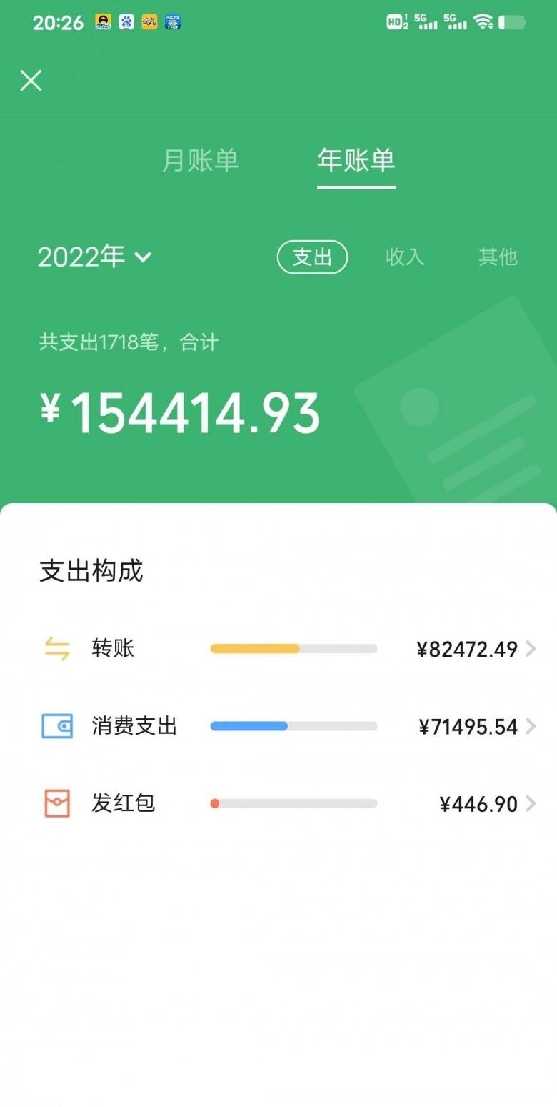 不看不知道一看吓一跳,一年用了40几万的流水,给老家父母转钱也是卡里转的,每个月除了5千固定的房贷,房贷也是银行卡扣的其他也没有卖什么大件东西,不知道钱用哪里去了,年年打工年年空呀!