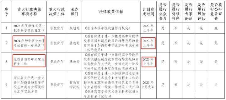 这两天,浙江省教育厅网站发布了《浙江省教育厅2023年度重大行政决策事项目录》,其中有两项重要内容,备受家长关注。
