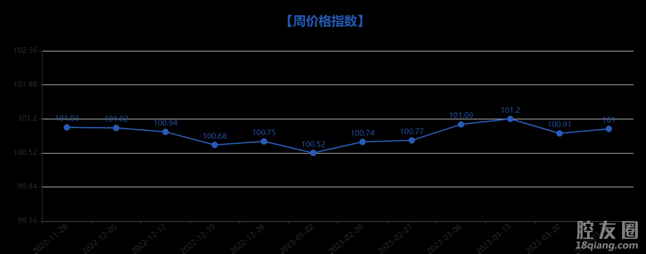 监测,“义乌·中国小商品指数”中小商品周价格指数本周为101.0点,环比上涨0.09点,出口交易价格指数、场内订单交易价格指数和场内直接交易价格指数环比分别上涨2.35点、0.07点和0.04点,网上交易价格指数环比下降1.81点。