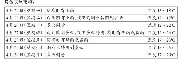 请输入描述 刚刚过去的周末,天气冷得像3月一样,不少小伙伴都把厚外套穿回来了。这次的“低温天气”啥时候才会结束呢?市气象台工作人员表示,近两天气温持续低迷,要等到“五一”假期,最高气温才会重回30℃。 中国天气网发消息称,此次冷空气的威力不容小觑,北方不少地区最高气温不足10℃,寒冷程度可能会是同期罕见。西南地区东部到长江中下游一带也将在今天陆续达到气温低点,不少地方最高气温将降到15℃左右。中央气象台预计,未来两天,中东部地区将有较大范围雨雪天气。在北方,青海东部和南部、甘肃南部、宁夏中南部、陕西北部、山西中南部以及内蒙古东部、黑龙江西部等地部分地区有小到中雪或雨夹雪,局地大到暴雪。在南方,西南地区、江汉、江淮、江南、华南等地的部分地区有分散性小到中雨,局地有大到暴雨,并伴有强对流天气。预计江南及其以北这种气温明显偏低的格局将持续到4月25日。 具体来看义乌,本周我市晴雨相间,前期受弱冷空气影响,气温相对较低,后期逐渐回升。其中,今明两天受冷空气影响,阴雨天气,气温较低,最高气温在17~18℃,最低气温12~13℃,大家出门记得多穿一点;4月26日起气温开始回升,我们也会迎来近期难得的晴好天气,要洗洗晒晒的小伙伴最好选择这天。因为4月27日夜里起,雨水又要上线了,受高空槽东移影响,我市会有阵雨或雷雨过程。到了周末,好天气就正式回归了。4月29日是“五一”假期的第一天,雨水也将在这天收尾,最高气温持续上升,4月30日最高气温将直逼30℃,出门在外的小伙伴记得做好防暑防晒工作。 此外,今年的第1号台风“珊瑚”已于4月20日下午在西北太平洋洋面上生成,并已于4月22日晚上在西北太平洋洋面上减弱消散。4月台风是不是有点早?其实这个时候有台风并不算早。据统计,西北太平洋和南海上,最早台风是1979年1号台风“爱丽斯”,1月1日8时生成;最晚台风是2000年23号台风“苏力”,12月30日8时生成。另外据国家气候中心2023年汛期气候预测,2023年在西北太平洋和南海生成的台风个数为24-27个(常年为25个);登陆我国的台风个数为6-8个(常年为7个);台风活动路径以西行和西北行为主,主要影响我国华南和华东沿海。(来源:义乌商报)