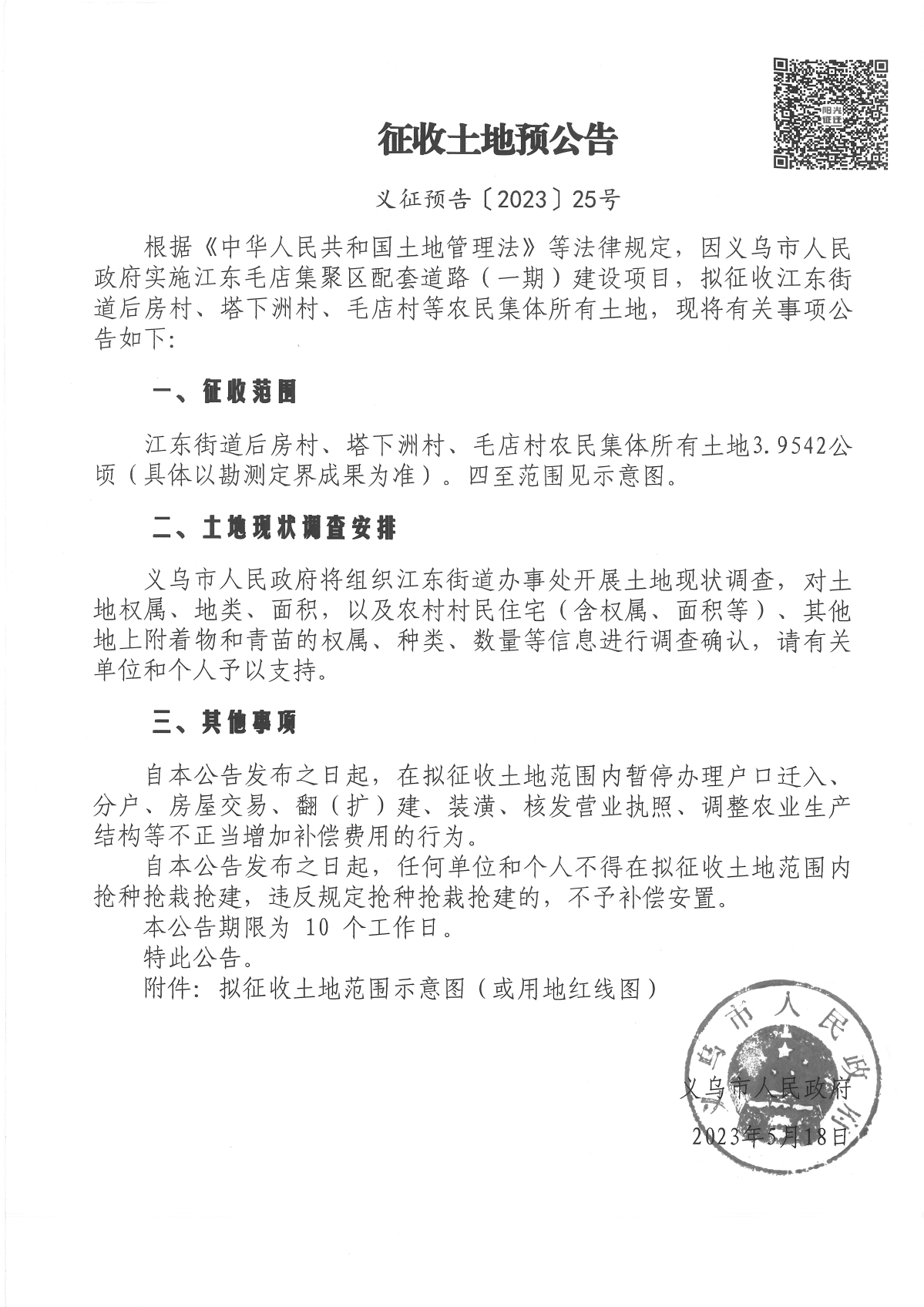 [义乌楼市]征收公告!106亩!涉及义乌江东、后宅... [复制链接]