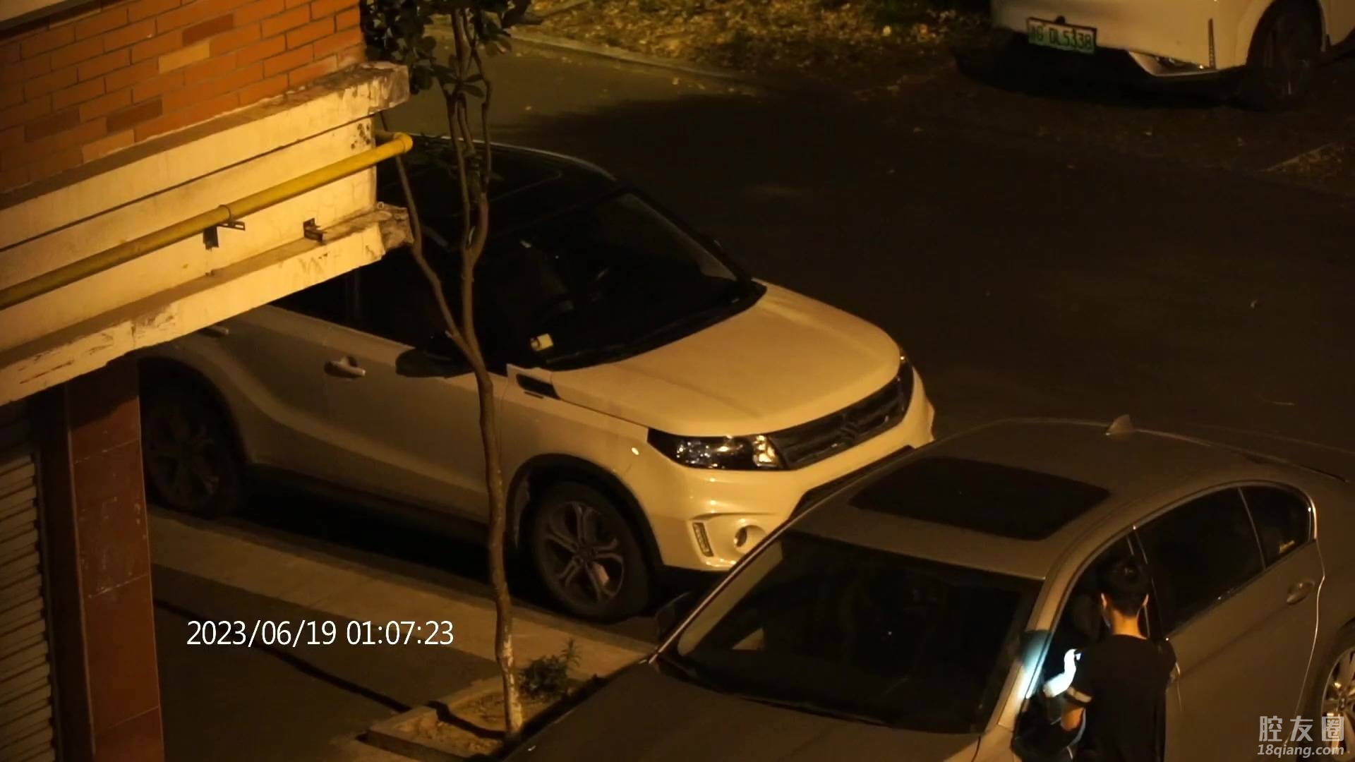 对于这件意外的掰后视镜事件,我还是觉得很不爽,于是我开始了针对小广告的取证拍摄,在车内和家里窗台架设相机,通过采集录像拍了几个晚上,终于拍到了贴小广告的这个家伙。
