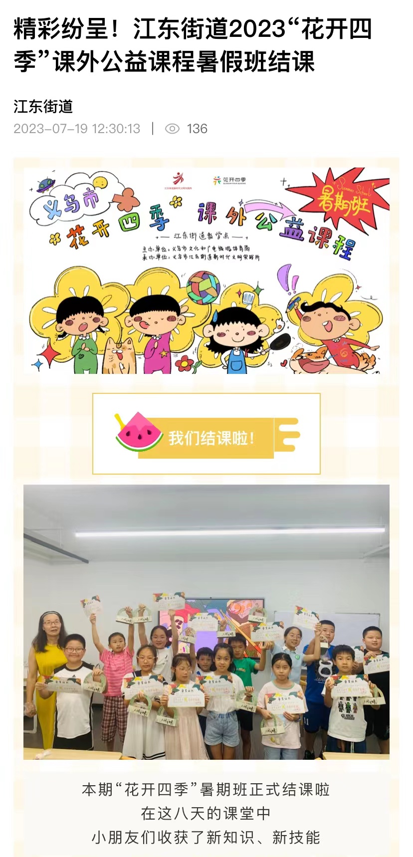 精彩纷呈!江东街道2023“花开四季”课外公益课程暑假班结课