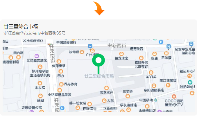 廿三里中心菜市场由义乌市市场开发服务中心有限责任公司投资运营,位于廿三里街道通宝路与康平路交叉口西南侧,交通便利,消费群体辐射廿三里、周边乡镇和邻近县市。