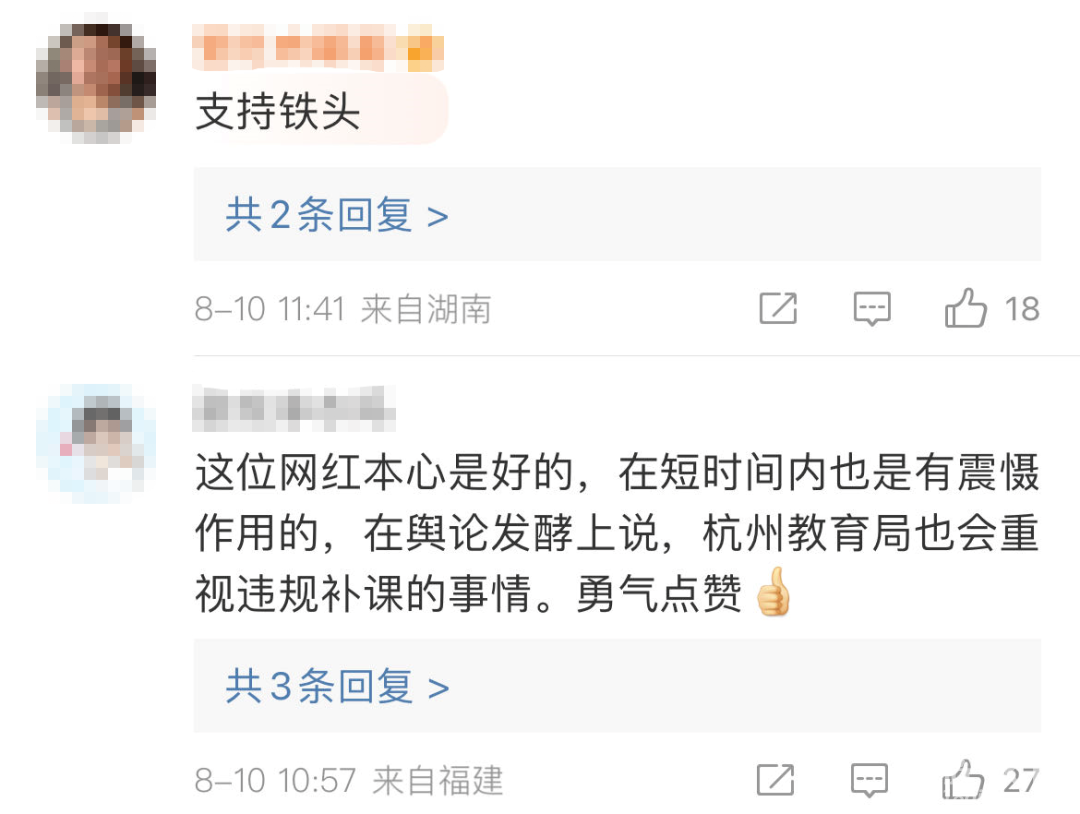 不过,在本次事件中,不少网友和家长都发出了内心的诉求,主要包含两种论调:一种是“家长工作都太忙,孩子暑假不补课去哪?”另一种则是“大众补课班可以举报,一对一私家班举报得了吗?如何保证自己的孩子在竞争激烈的高考下不被落下?”甚至有网友直呼“铁头这一闹,这下补课价格又将大幅上涨!”
