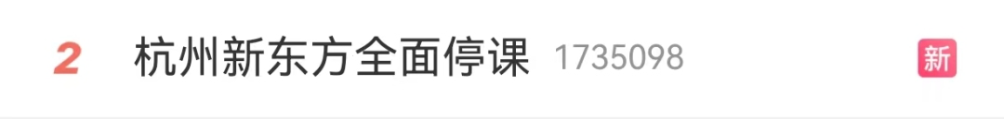 有杭州家长称,其孩子在杭州新东方接受高中学科辅导,周一突然接到停课通知,目前尚未复课。虽然铁头没有在她孩子所在校区闹事,但全杭州的线下学习中心都停了。
