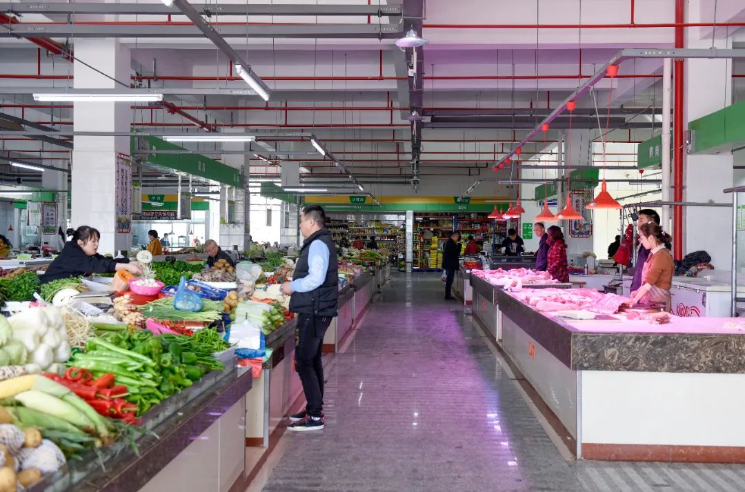 一层菜市场共有摊店52个,其中店面11间,摊位41个,包括蔬菜、鲜肉、水产品、海产品、熟食等行业,种类相当齐全环境干净舒适,可以满足周边市民的采购需求。