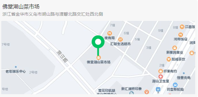 佛堂湖山菜市场由市场集团义乌市市场开发服务中心有限责任公司投资运营,位于佛堂镇湖山路128号,地理位置优越,周边辐射多个居民小区,于2018年9月22日开业。