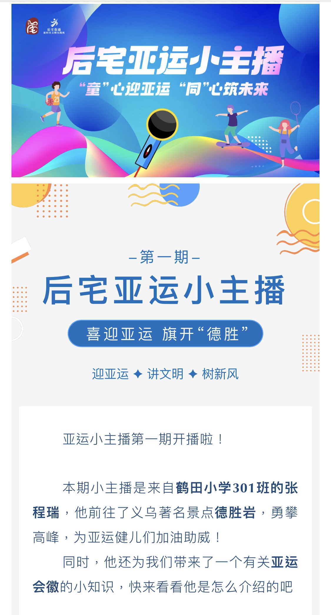 新时代文明实践|后宅亚运小主播第一期 喜迎亚运 旗开“德胜”