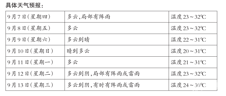 最近的台风多到眼花缭乱,自8月24日到9月5日,太平洋上已经先后生成“苏拉”“达维”“海葵”“海雁”“鸳鸯”等台风。台风虽多,但对我市影响不大。想出去游玩的小伙伴,不妨选择周末出游,天气晴好,气温不高。 新生成的台风“鸳鸯”会靠近我们吗?接下去还有台风生成吗?记者从气象部门获悉,今年13号台风“鸳鸯”于9月5日晚上在西北太平洋洋面生成,9月6日上午8时,其中心位于北纬25.5度、东经133.1度,气压998百帕,近中心最大风力8级,预计“鸳鸯”将以每小时35公里左右的速度向北偏东方向快速移动,强度缓慢增强。未来“鸳鸯”对我省基本无影响。9月5日,中国气象局召开9月新闻发布会,会上介绍了9月台风趋势预测,预计9月后期,还可能有1个热带气旋登陆或明显影响我国华南或东南沿海。 虽然没有台风影响,但接下去我市仍有降水天气。市气象台预计,未来几天我市晴雨相间。其中,今天我市以多云为主,局部有阵雨;9月8日—12日,我市基本以多云到晴天气为主,白天体感会显得闷热,夏季体感再度回归;9月13日前后受高空槽东移影响,我市将有一次降水过程。从气温来看,总体较为平稳,最高气温在30~32℃,最低气温在20~24℃。 值得注意的是,气温虽然没有大起大落,但昼夜温差加大了。明日,我们将迎来全年昼夜温差最大的白露节气。俗话说“白露秋分夜,夜凉日里热”,白露表示天气已转凉,让人明显感觉到炎炎夏日已过。市气象台工作人员表示,眼下,最高气温和最低气温总趋势都是下行的。白露以后,冷空气南下会日趋频繁,早晚天气渐凉、白天仍有点热,室外凉丝丝、室内还有点闷热。眼下正处于夏秋交替之时,两季拉锯纠缠,呼吸道、消化道、心血管等疾病多发,大家要保重身体。白露时节就要开始预防秋燥了,此时节需注意养肺润燥,预防和减少皮肤疾病的发生。(via:义乌商报) 请输入描述