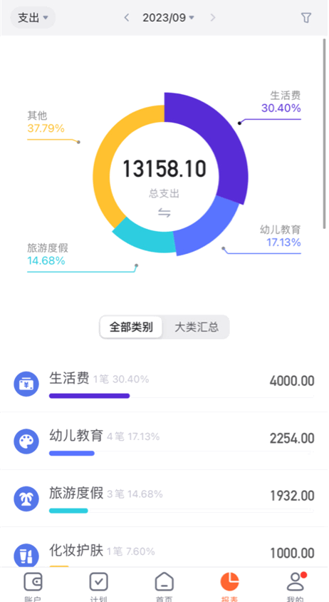 幼儿教育2000多,是大宝学乐器钱,外加零散的一些