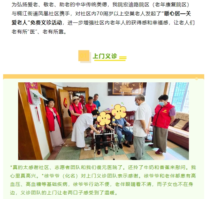 让“空巢老人”心中不空 我院宏迪路院区义诊送上门