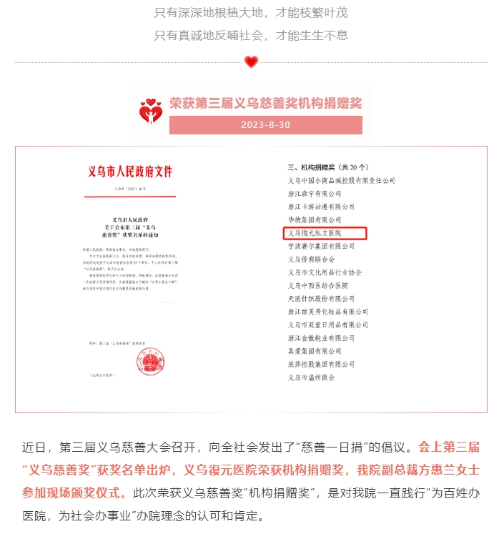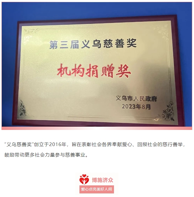 数十年如一日,慈善点亮新征程!我院荣膺第三届义乌慈善奖机构捐赠奖