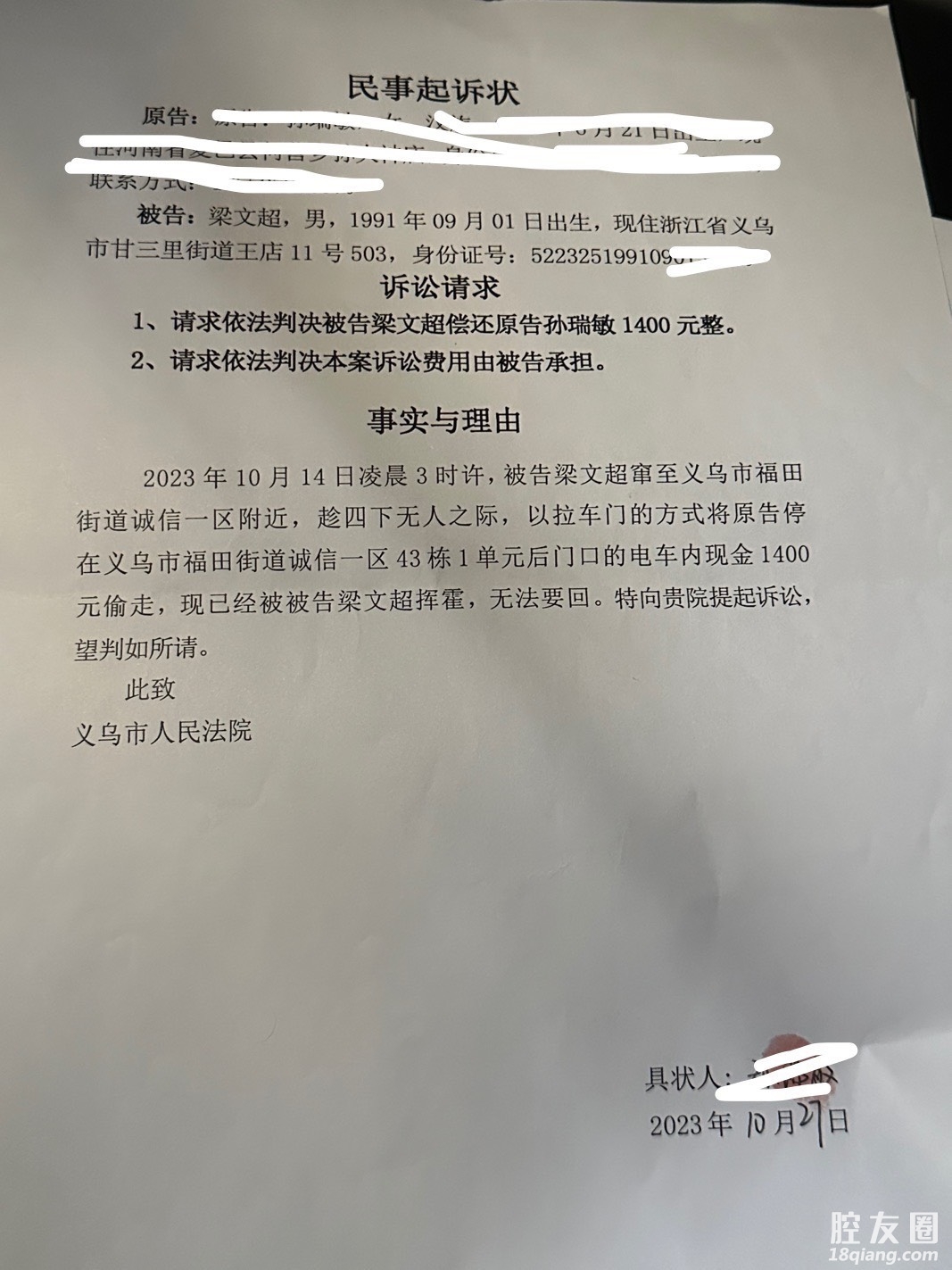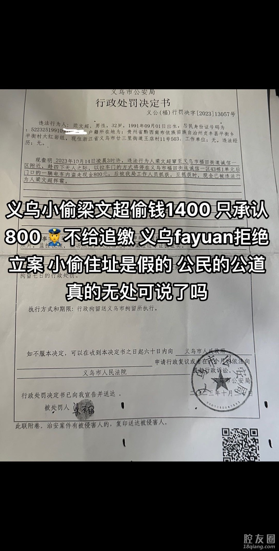 [义乌故事]小偷梁文超请求还钱 [复制链接]