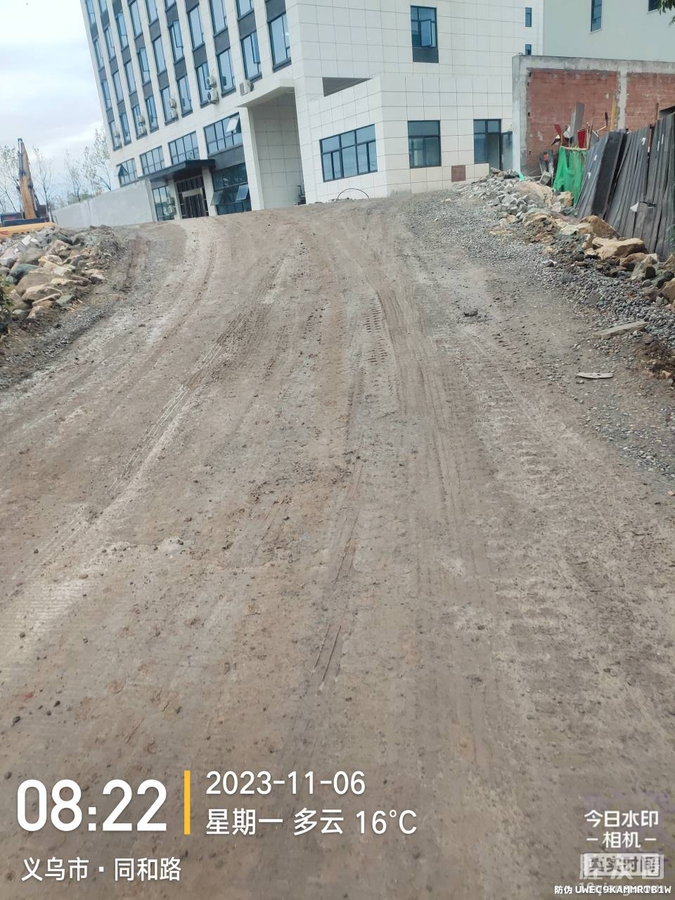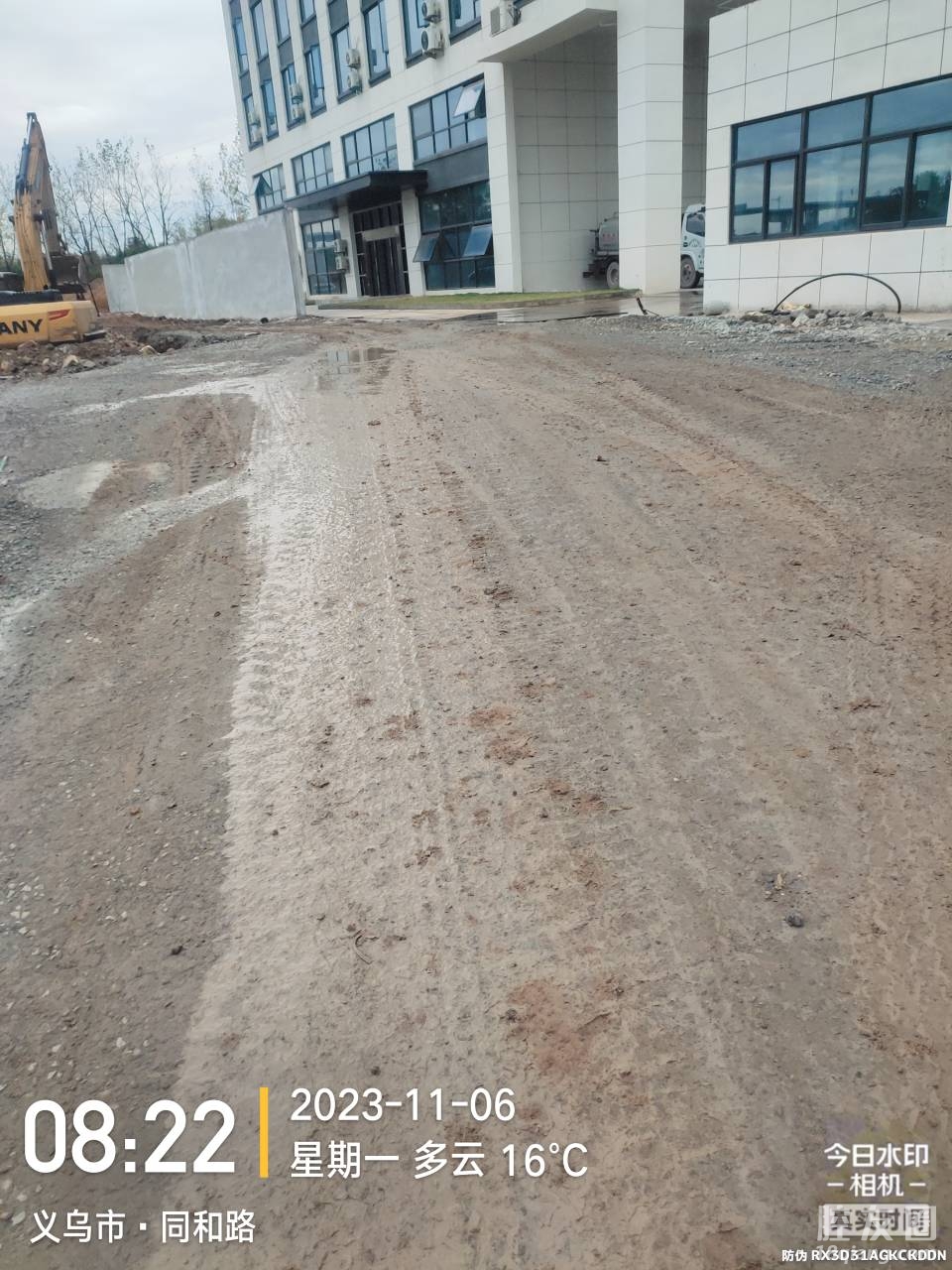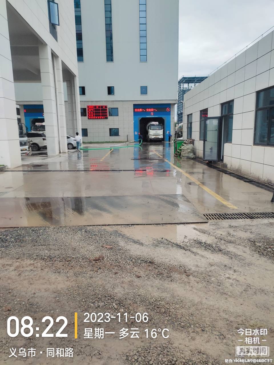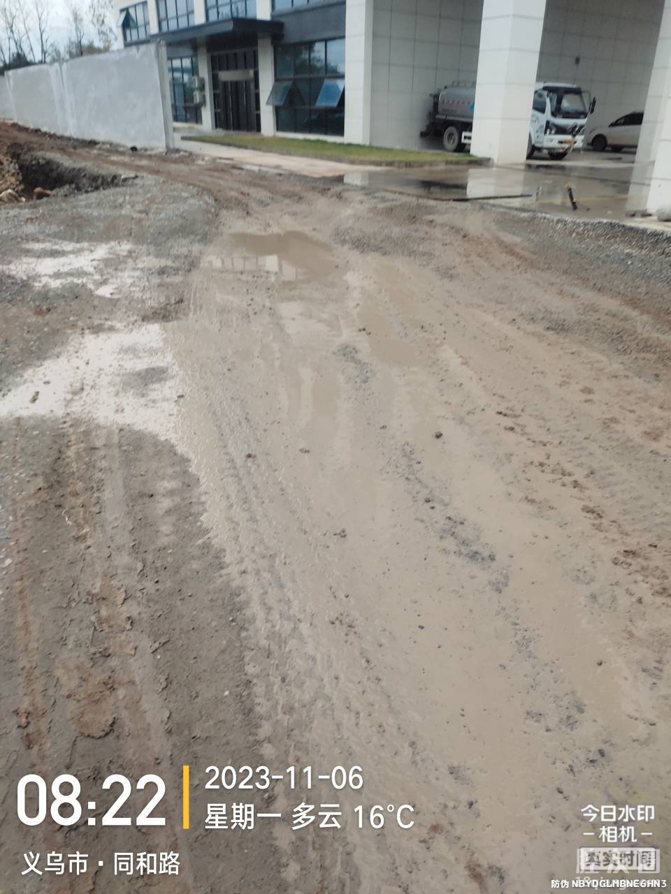 义乌远**泥土有限公司的老板早上好,你们公司前面的这条水泥路又很脏了,能否叫那个洒水车去冲洗一下,谢谢了
