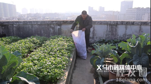 李师傅说:“我看菜长得差不多了,就摘好放电梯里让他们自取,这些菜都不打农药的,他们拿走我们都很高兴。”