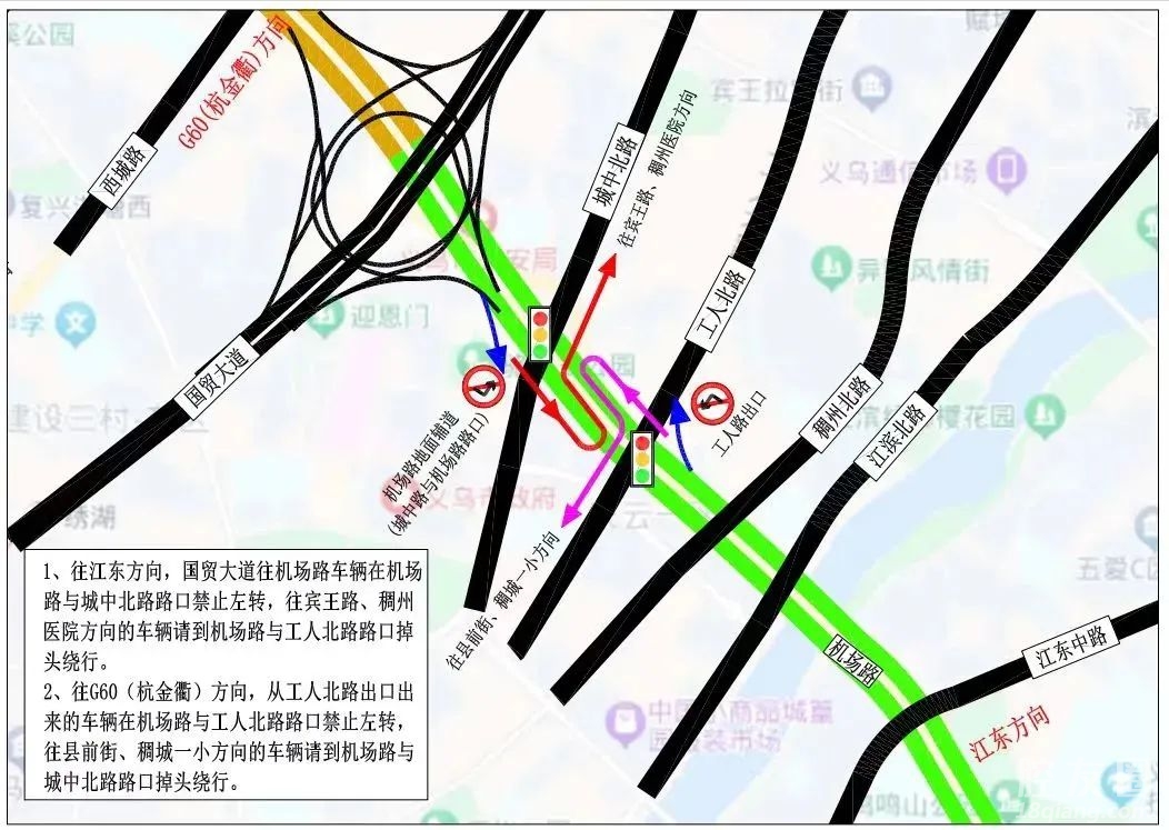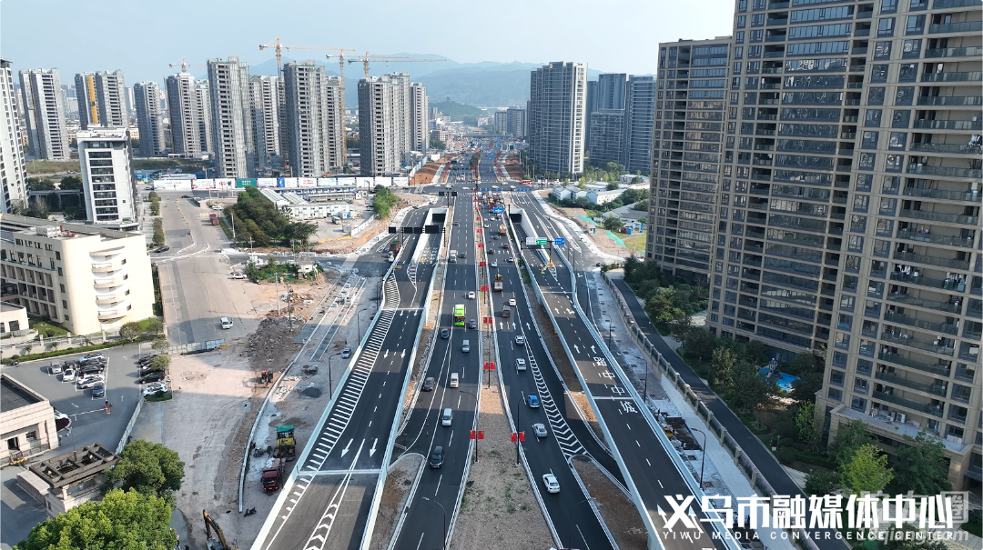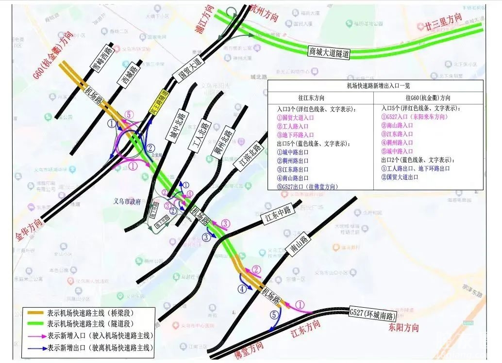 机场路立交化改造工程三阶段北起国贸大道,南至环城南路,全长约3.55公里,涉及路面、桥梁、隧道、管廊等多个工程。机场路立交化改造工程三阶段通道开放通行后,机动车进入机场路地下隧道,下穿城中路、工人路、稠州路、江滨路、义乌江、江东路后到鸡鸣山前接顺地面,直至环城南路。该工程在环城南路上进入高架,与江赤公路高架相衔接。