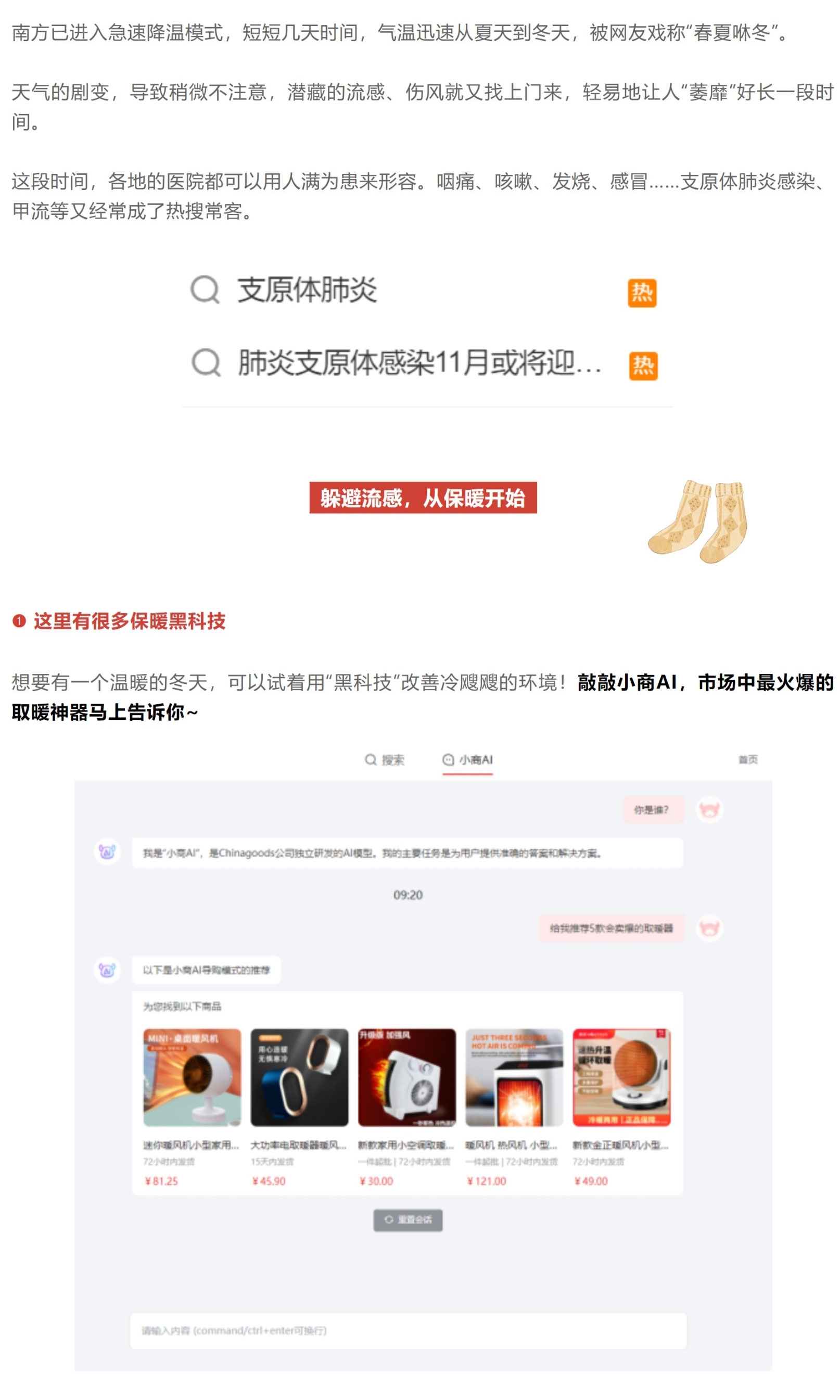 春夏咻冬,速冻降温,小商AI透露防寒保暖商机~