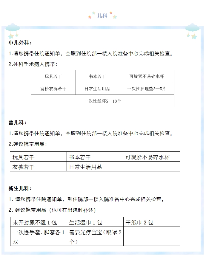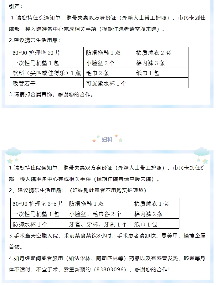 【温馨提醒】产科、妇科、儿科住院要准备这些用品...