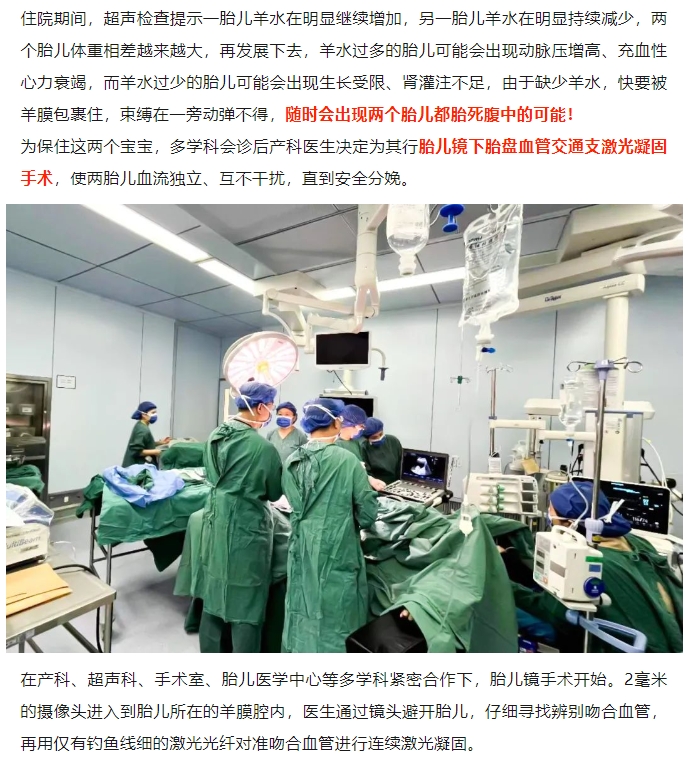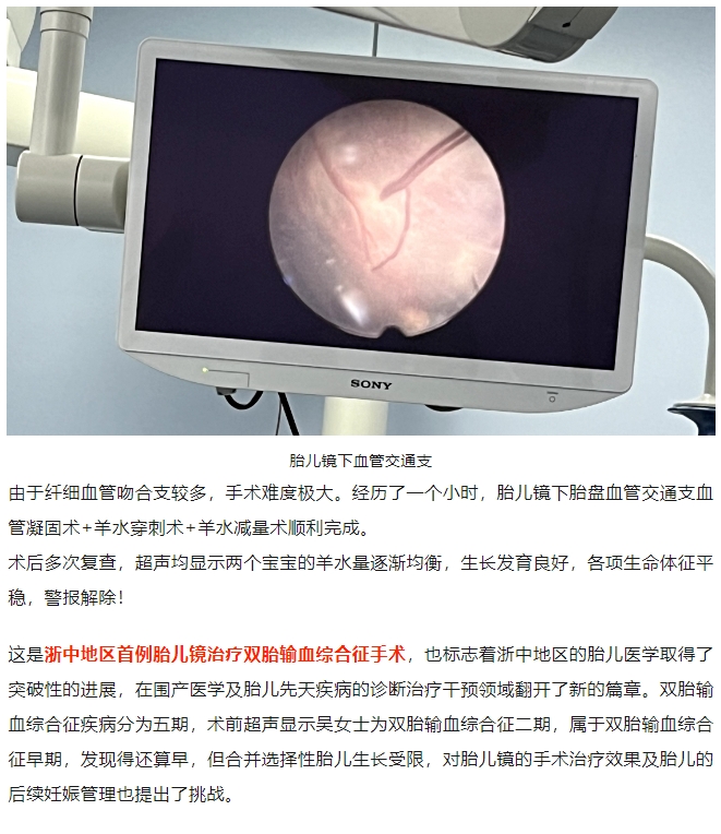 双胞胎腹中“宫斗”遭遇抢血危机!浙中首例胎儿镜手术成功“劝架”