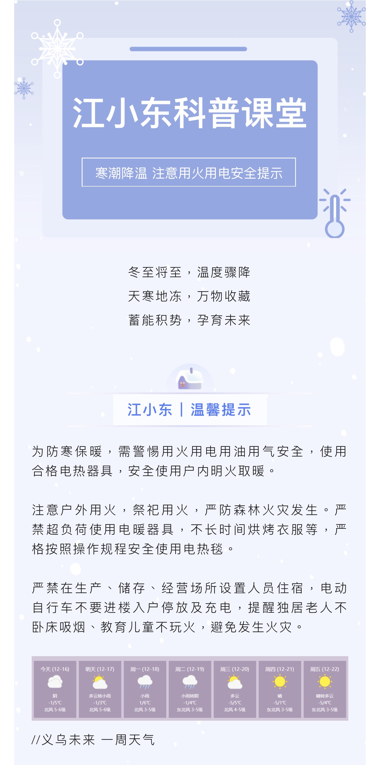江小东科普课堂 | 寒潮降温注意用火用电安全提示
