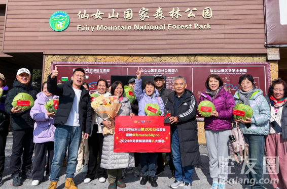 上午11时54分,来自山东济南的幸运游客潘荣华成为仙女山旅游景区第200万名游客,并获得景区赠送的“遥遥领先”豪华大礼,其中包括华为mate60pro手机、2024年全年免费畅游武隆八大景区。