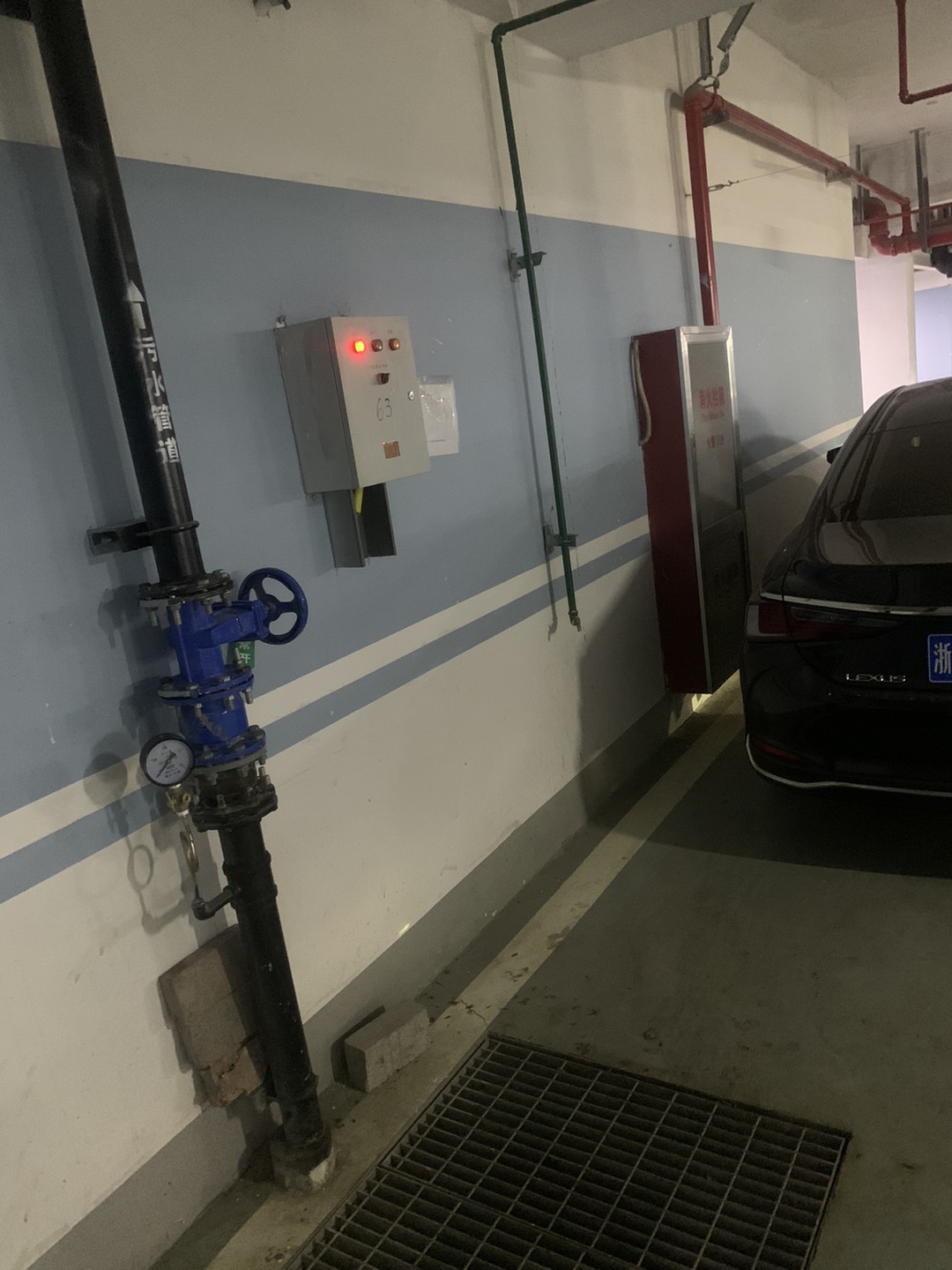 地下室停车位被污水管道、电箱、自来水管占用到车位,导致停车困难,开车门撞破头.