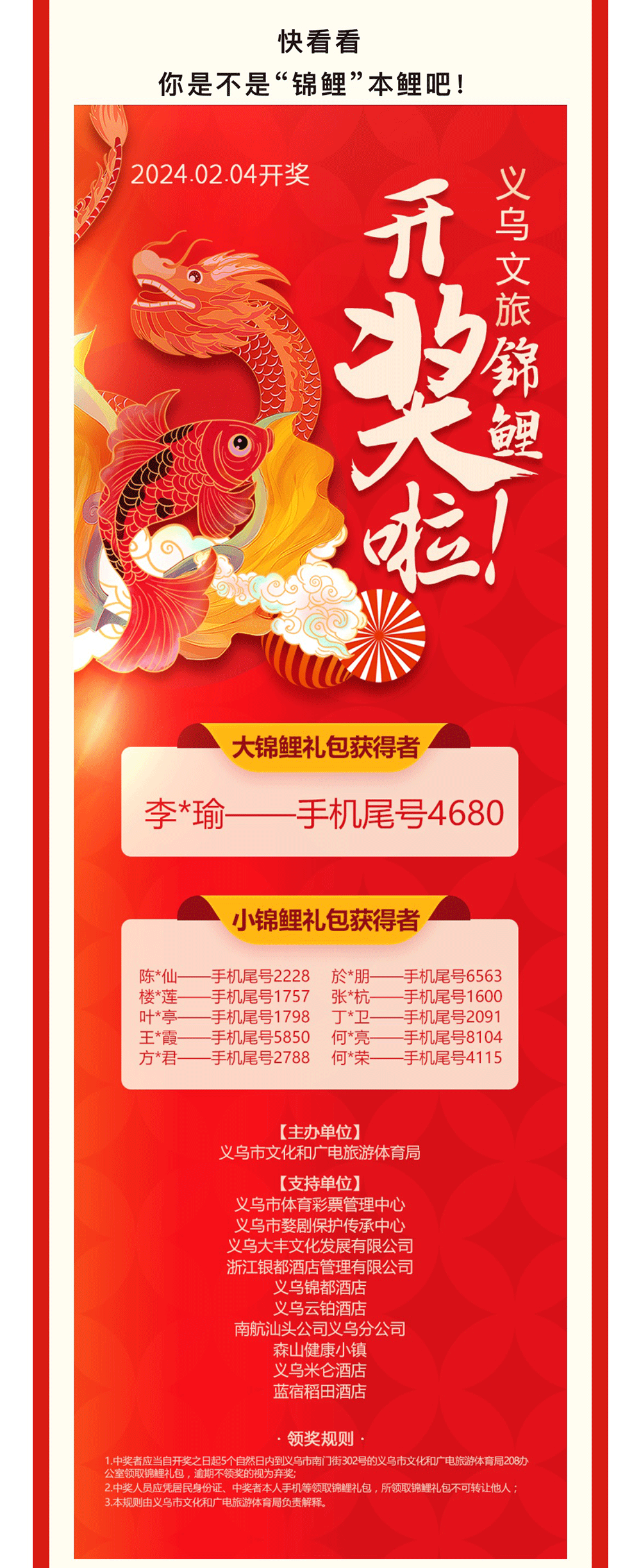 总价值8万元的义乌文旅锦鲤已开奖!快看看有你吗?