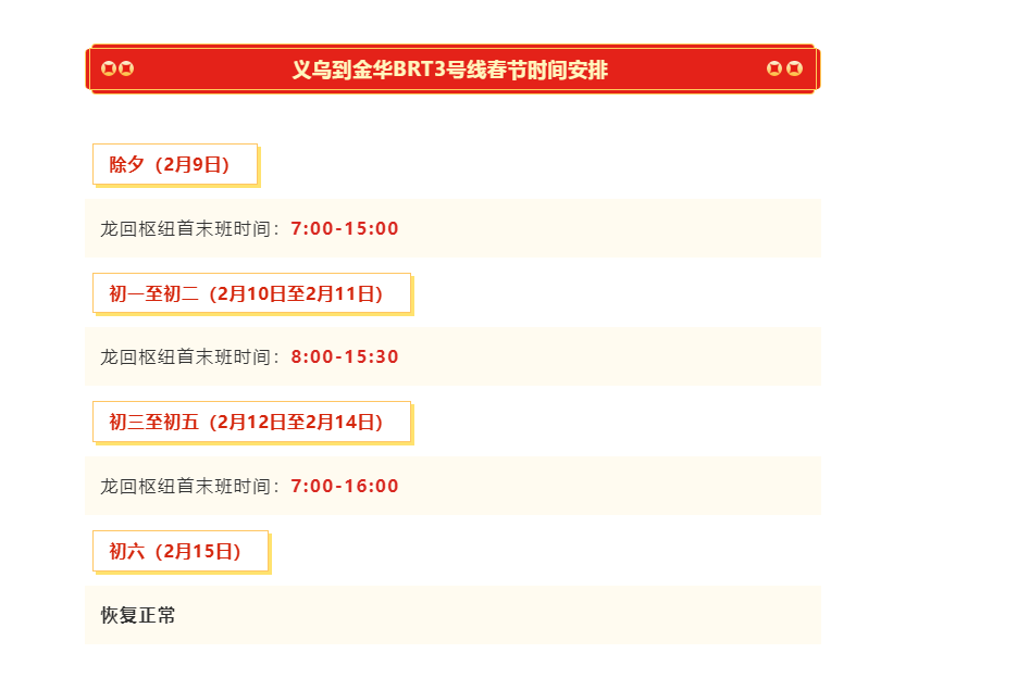 春节期间,义乌公交运营时间有调整这份春节恒风公交营运时间安排请你查收!